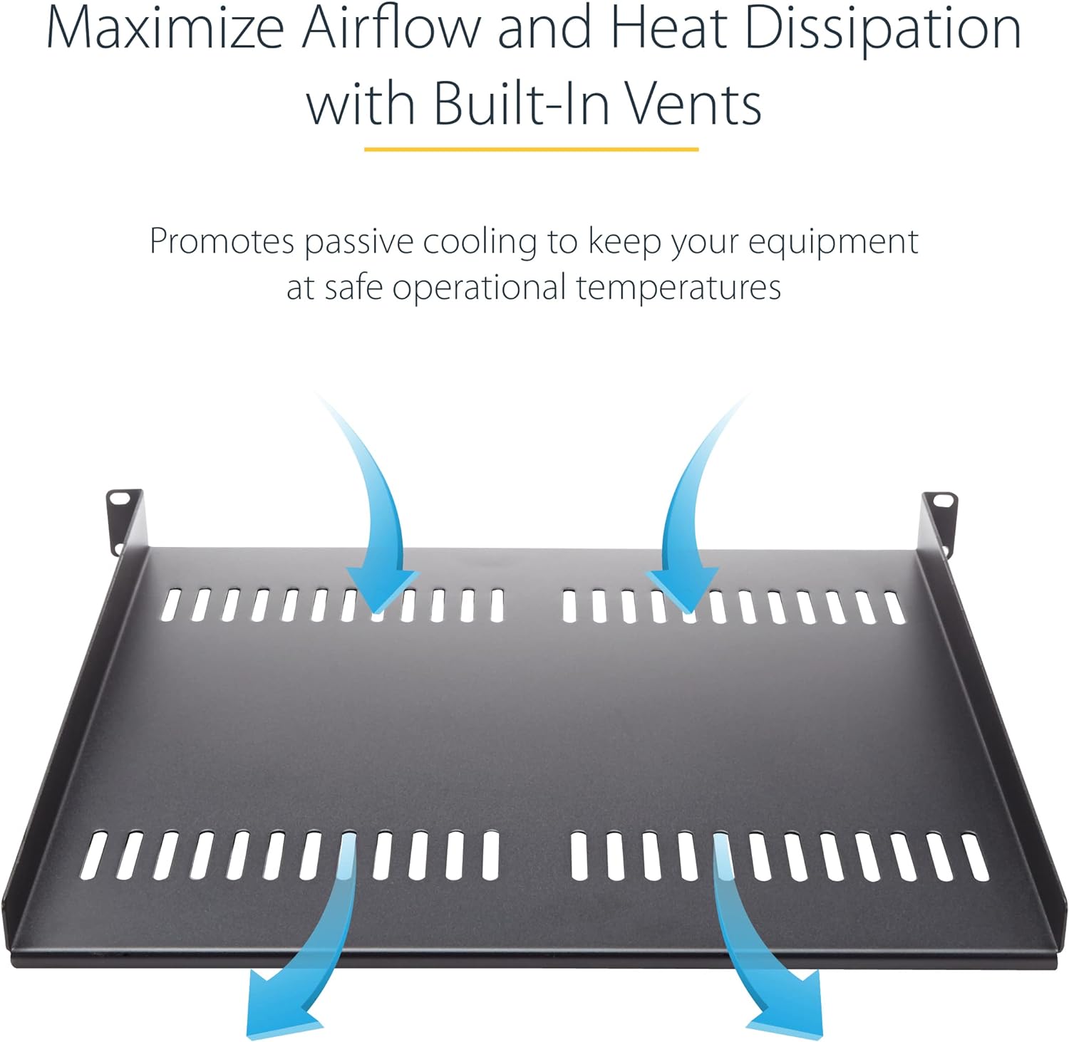 - MAXIMIZE VENTILIATION: The vented shelf plate on the cantilever rack shelf ensures consistent airflow to effectively dissipate heat on servers; it also works great to keep your computer and AV equipment cool in your home, studio, or office space