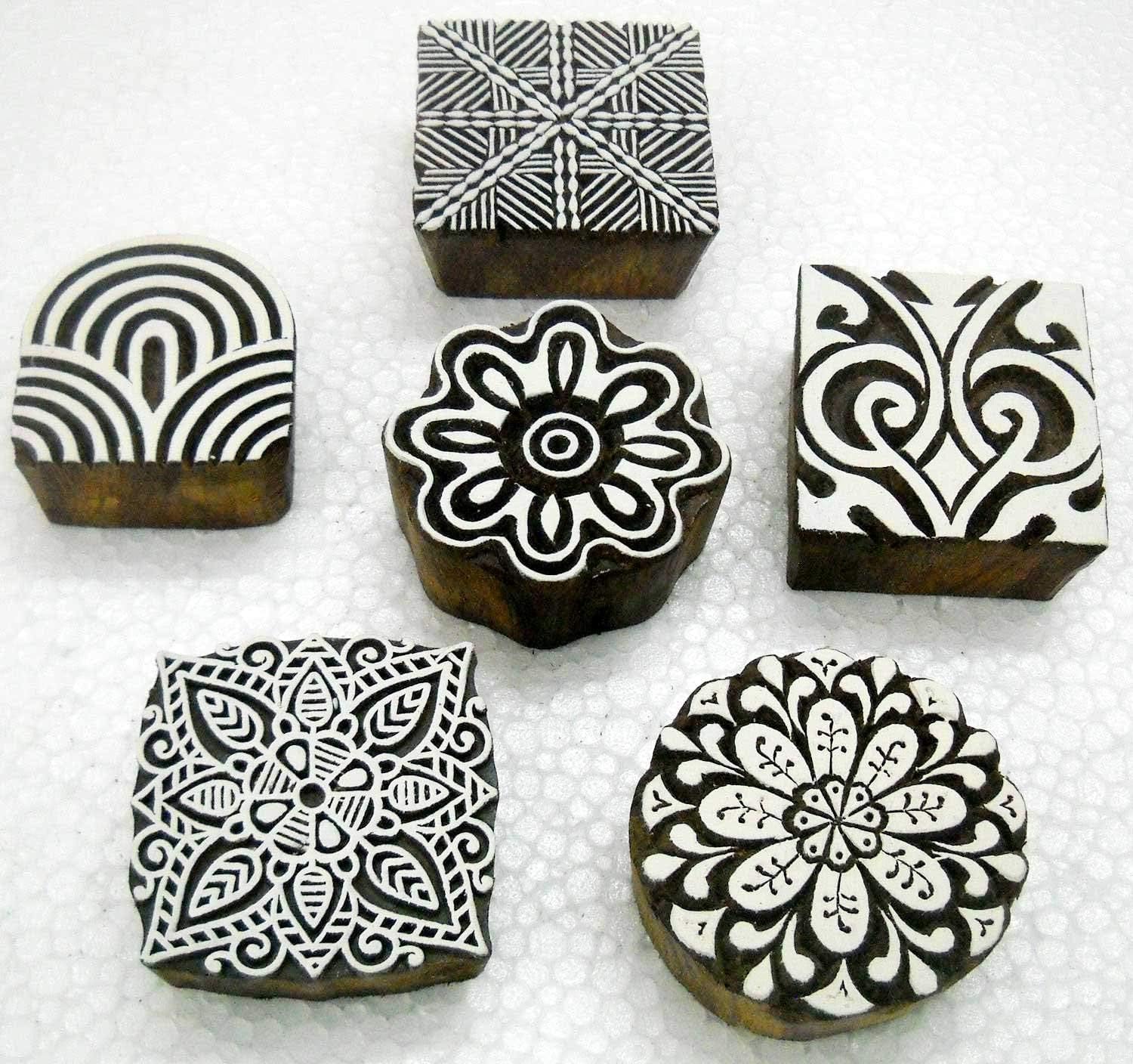- Wholesale Pack of Six unique Exotic Designs wooden block stamps/ Tattoo/ Handcarved Indian Textile Printing Blocks