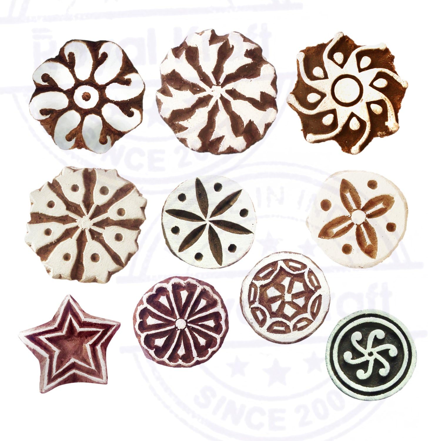 Paper Print Stamps Intricate Small Round Pattern Wood Blocks (Set of 10)
