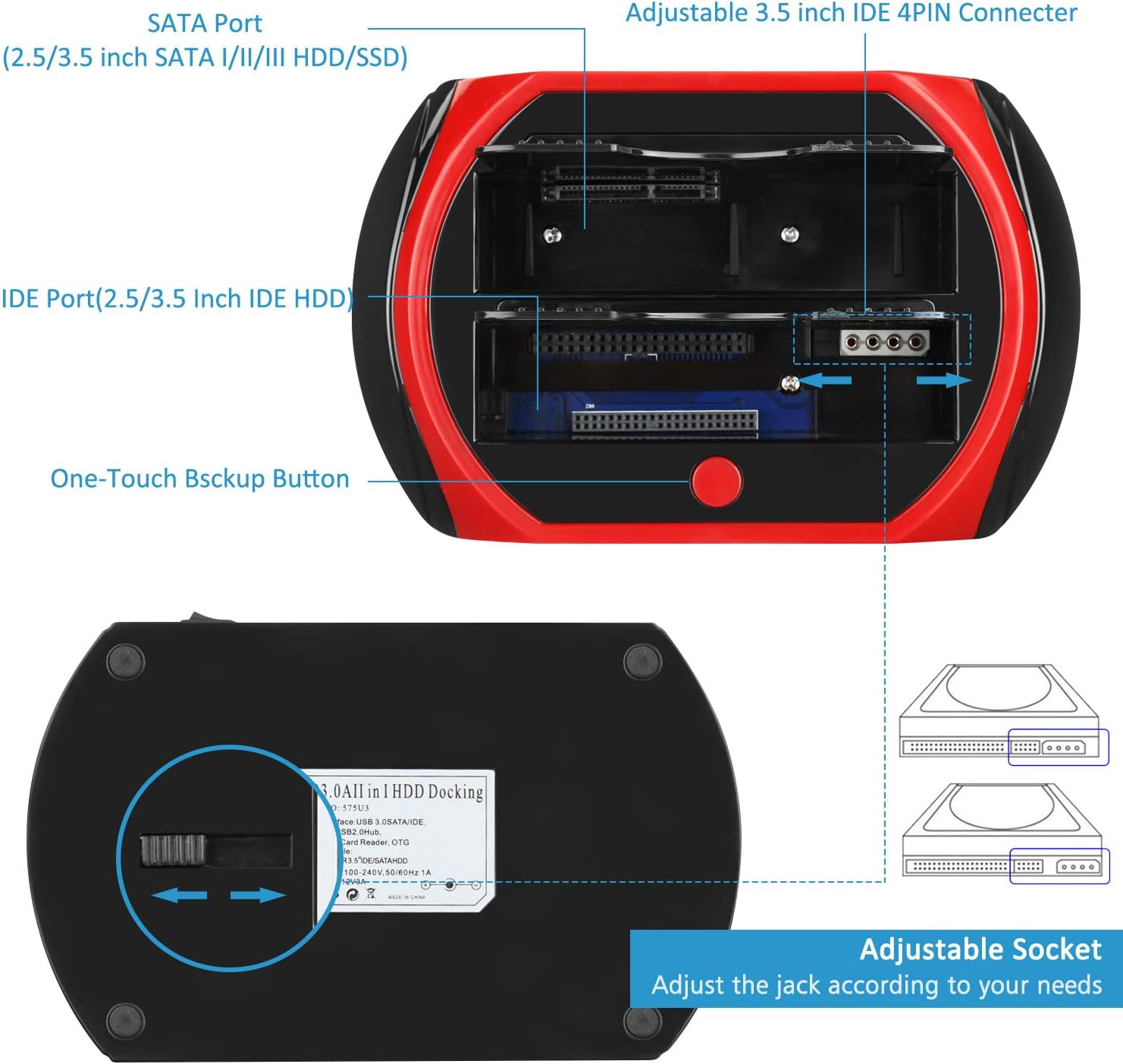 Hard Drive Docking Station, TCC-S862-US USB 2.0 to 2.5 3.5 Inch SATA IDE Dual Slots External Enclosure with All in 1 Card Reader and USB 2.0 Hub for 2.5" 3.5" IDE SATA I/II/III HDD SSD