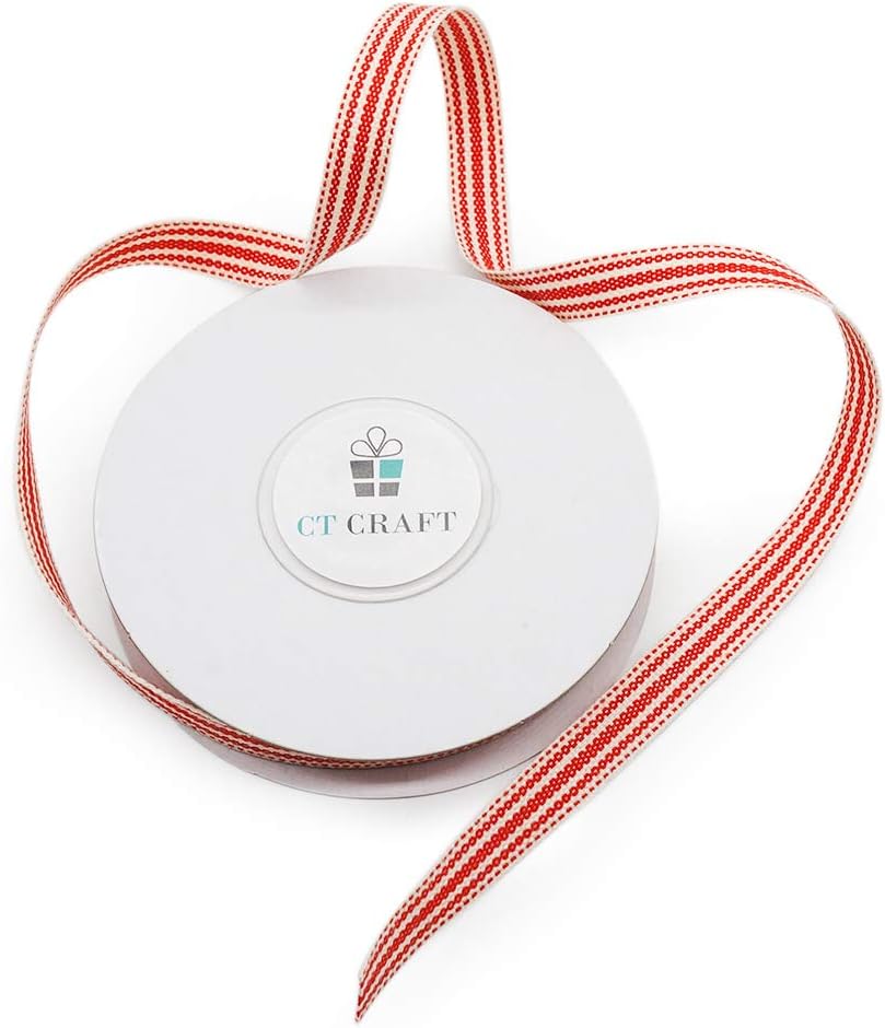 - SIMPLE YET ELEGANT - There is nothing that can accent your Craft better than our Ivory Cotton Red Stripes Ribbon 3/8" for crafts. This ribbon matches any type of gift wrapping paper and the texture not only adds to their premium quality. You'll appreciate the ease and finesse with which these Ivory Cotton Red Stripes Ribbon 3/8" glide through your fingers.