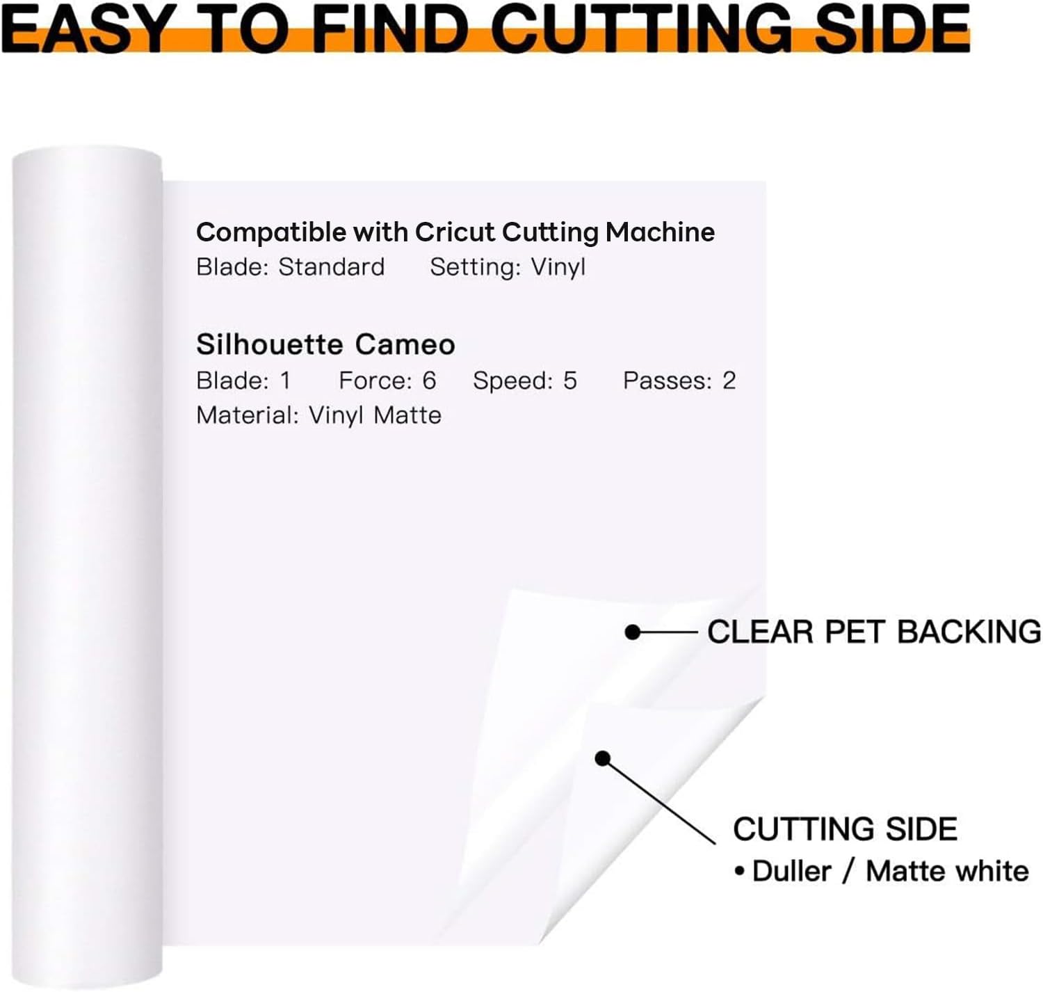 - CLEAR PET BACKING: Say goodbye to paper backing, which sticks to mat and ruin your design. Using our white permanent vinyl with PET backing, you will not need to clean your mat and worry about project damage. No more cheap paper backing ruining and separating from the white vinyl in the cutting process. Our PET backing is the ultimate answer to your woes