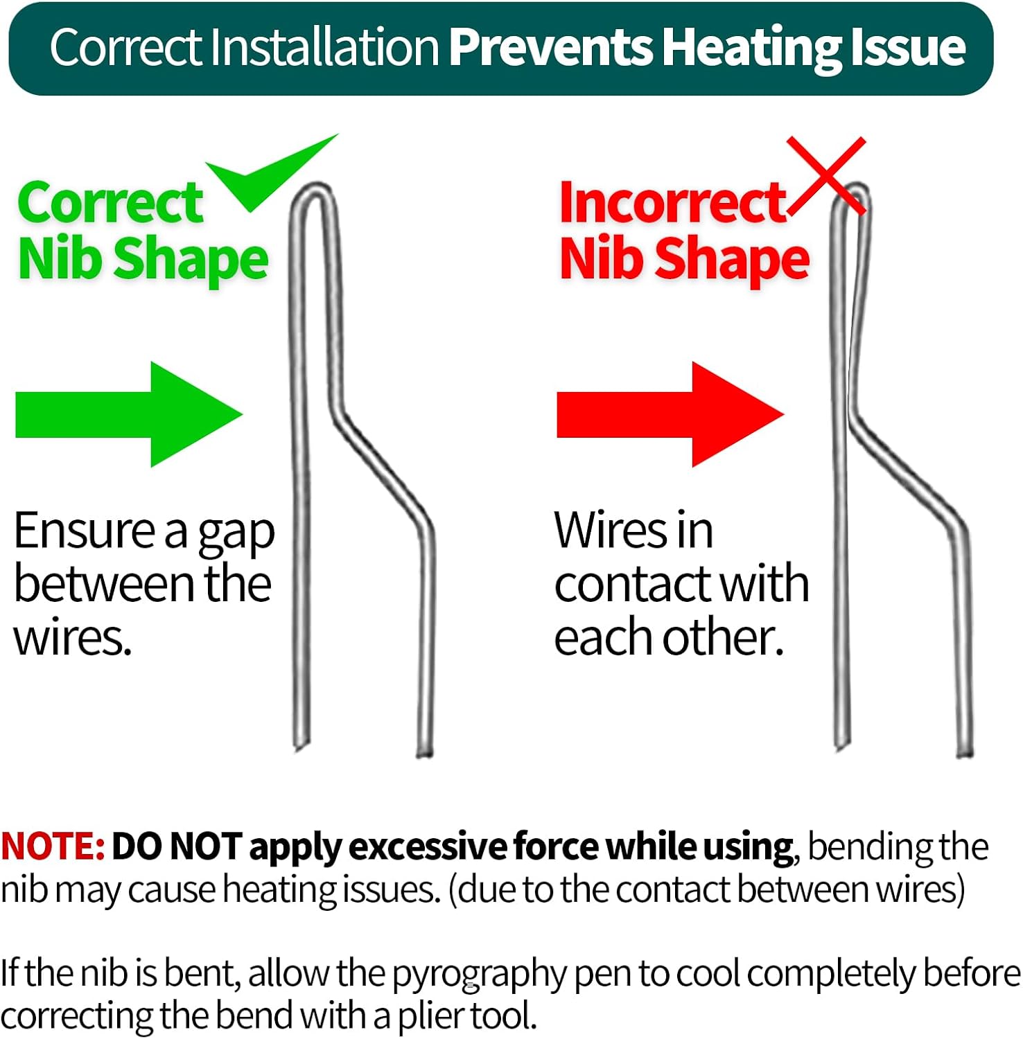- In order for the nib to get hot: please read and follow the operation instructions (page 2, section III OPERATION) in the product to ensure the normal operation of this tool. Please ensure the nib's wires are not in contact with each other before installing to avoid heating issues.