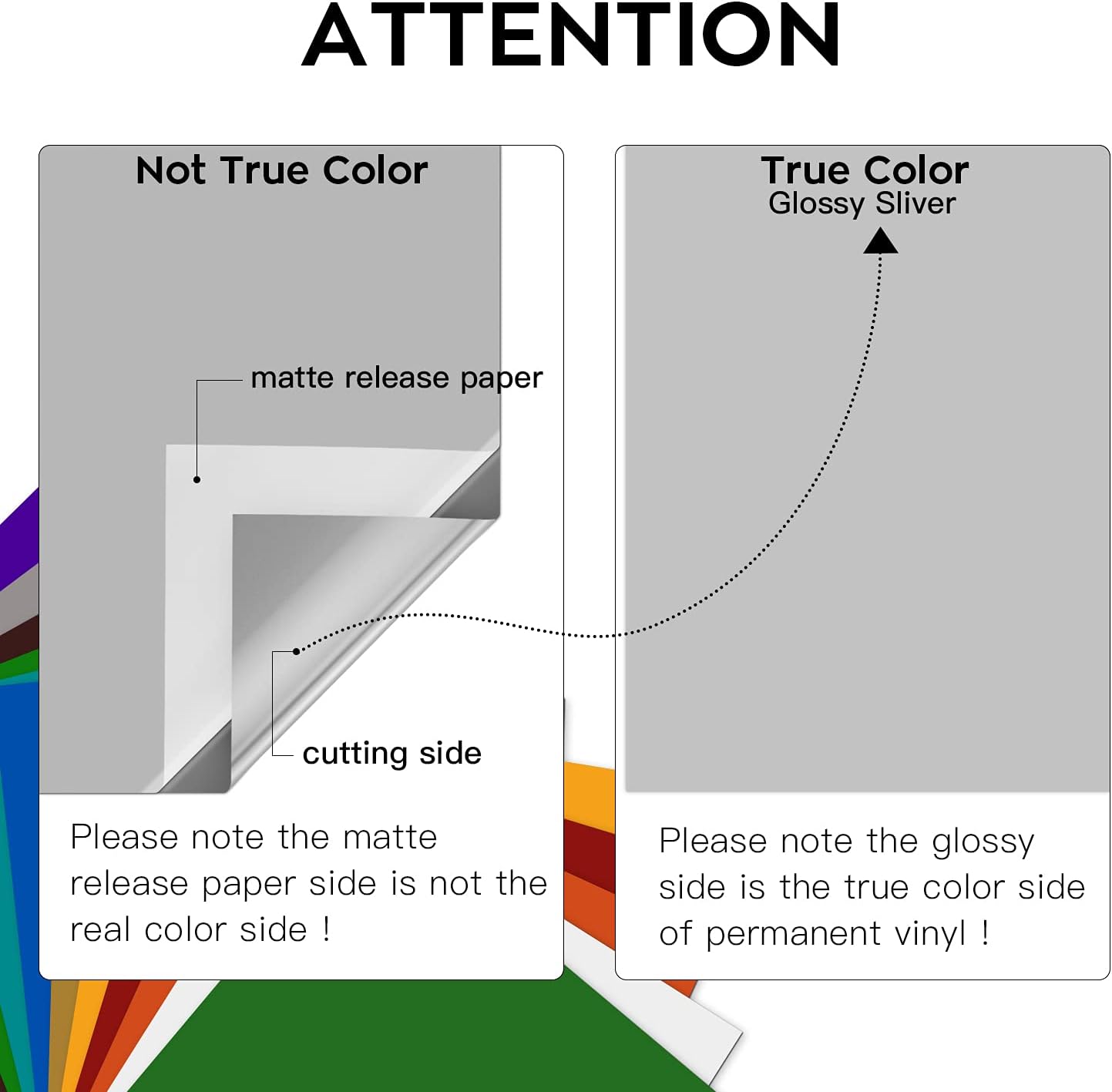 - š VIVID COLOR & GREAT BRAND SERVICE š We stand by the quality and versatility of our permanent vinyl.Your satisfaction is our NO.1 priority.If you are not satisfied our silver vinyl sheets, please feel free to let us konw, and we will provide you a satisfied solution. In this permanent adhesive vinyl starter pack, you can choose different colors (glossy/matte black vinyl, glossy/matte white vinyl and other colors). And each permanent vinyl bundle contains 2 pieces of transfer paper.