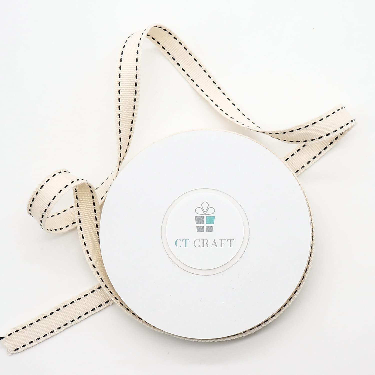 - EASY TO USE - The 10-yard long Ivory Cotton Black Stitched Ribbon 3/8" is enough for all the decorating and accenting your DIY Crafts. The Ivory Cotton Black Stitched Ribbon 3/8" is easy to use and won’t tangle. It can be tied or glued on gift packages and DIY craft projects such as car and chair bow, wreath, flower bouquet.