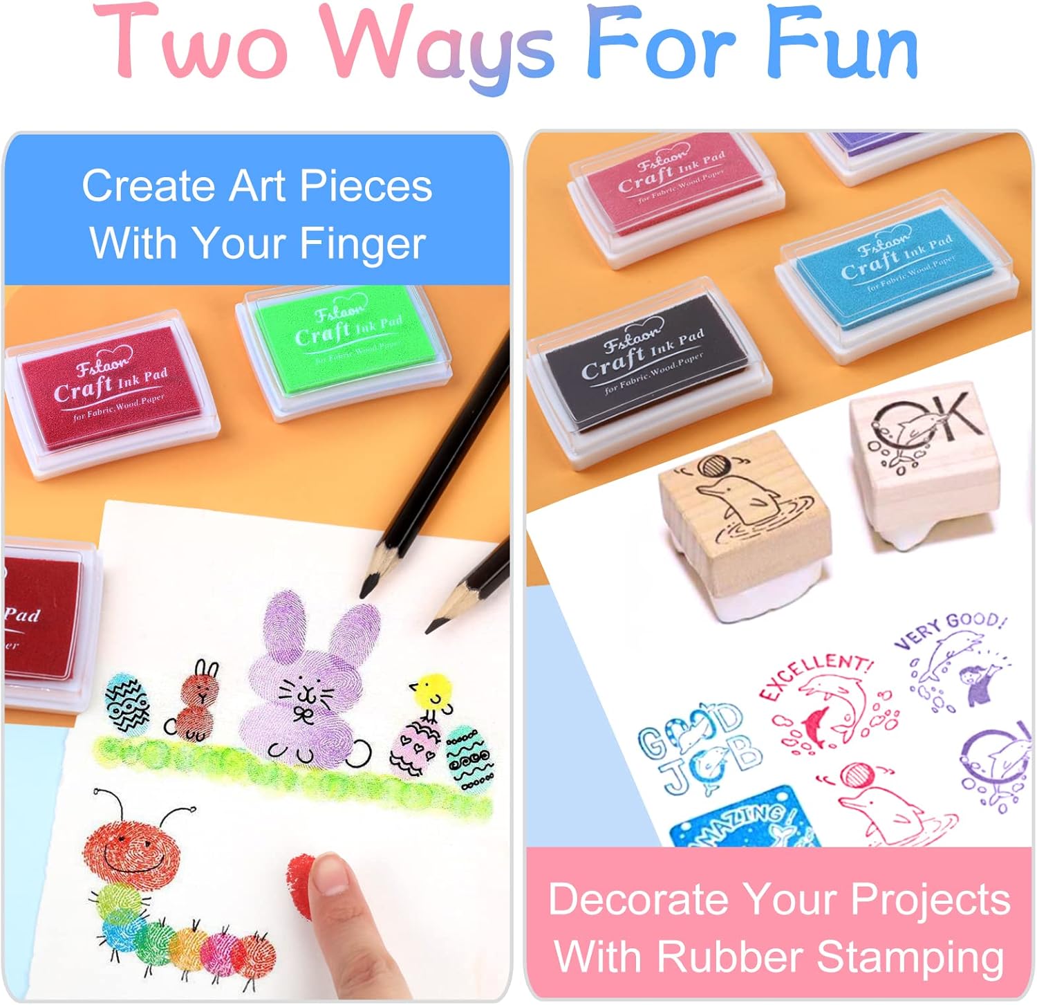 Fstaor 16 Colors Washable Stamp Ink Pads for Kids Crafts, Fingerprint Ink Pads for Stamps on Paper, Fabric, Wood & DIY Art Projects (16 Pack)