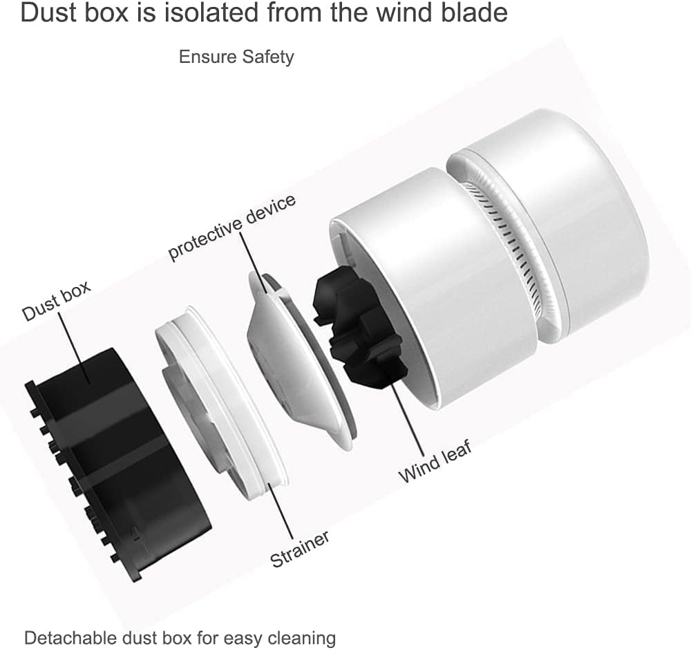 - 【High Suction and Low Noise】With 1000Pa of suction power, Table Vacuum Cleaner is strong enough to pick up even the largest piles. Yet, it is quiet enough for you to read or sleep while it cleans. Our cordless dust catcher save you from the mess of paper scrap, daily dust, cigarette ash, dog hair or powder on the desk. The table cleaner spins at up to 9000 rpm compared to 6000 rpm of other cleaner. It generates the suction power of a vacuum.