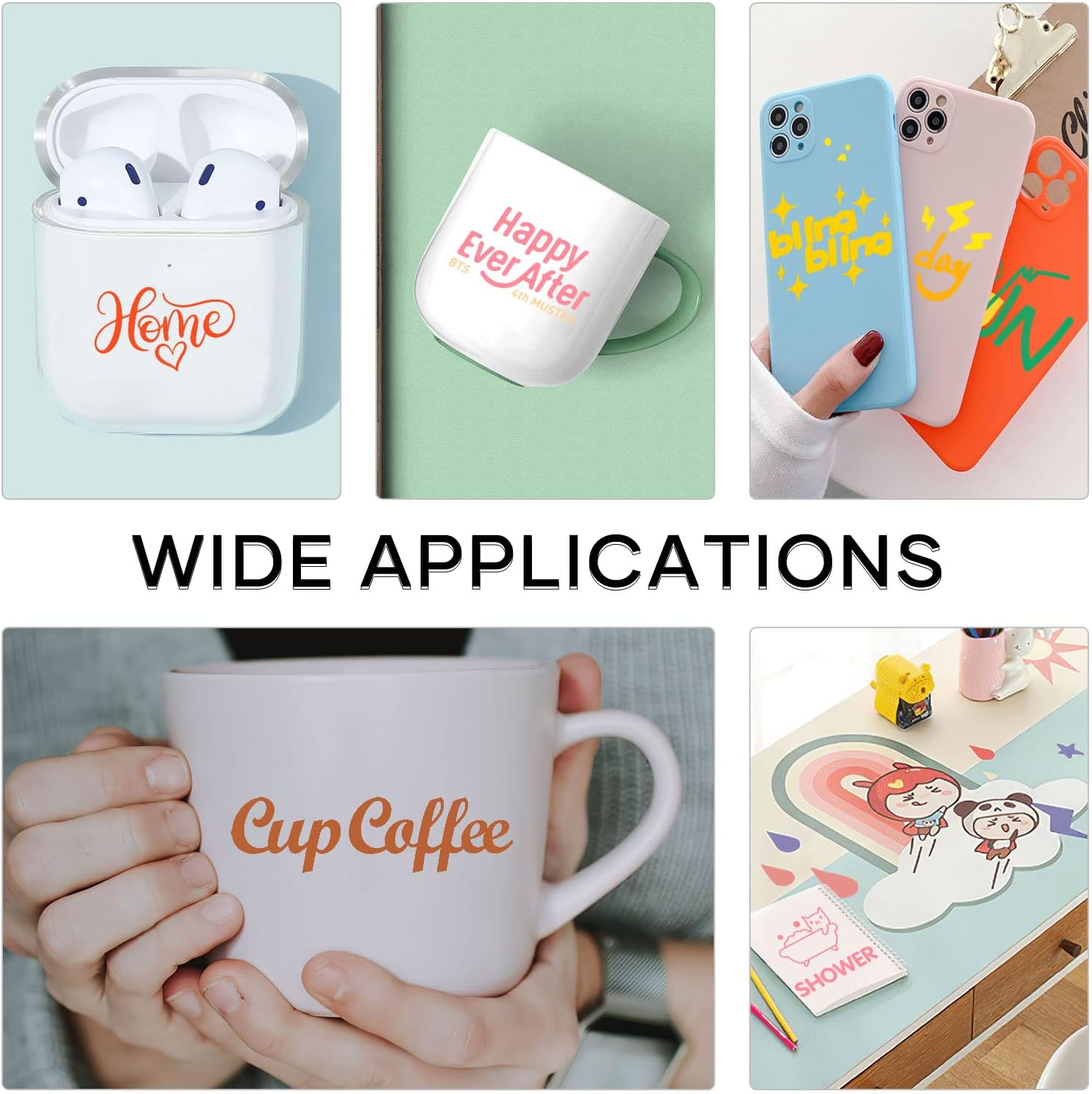 - Wide Application: Permanent adhesive vinyl can be used on any smooth and hard surface. You can use adhesive vinyl sheets to decorate metal, wood, ceramic, glass, etc. Notice: NOT SUITABLE FOR FABRIC AND CAR