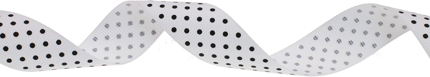 Polka Dot Grosgrain Ribbon 25 Yard Each Roll 100% Polyester (1", White)