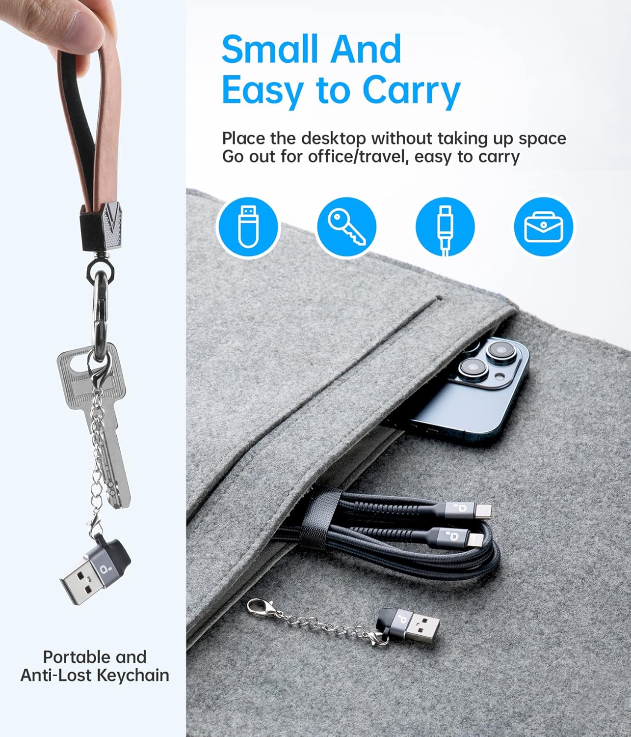 - 【USB C to A Adapter】 This USB Type C to lightning cable with a USB-C female to USB-A male adapter for charging or data transfer.With this USBA to USBC Charger Adapter/OTG your legacy devices (charger, power bank, computer) can turn into a USB-C enabled platform.The USB male to USB C female Adapter is easy to carry that small and exquisite design with keychain.