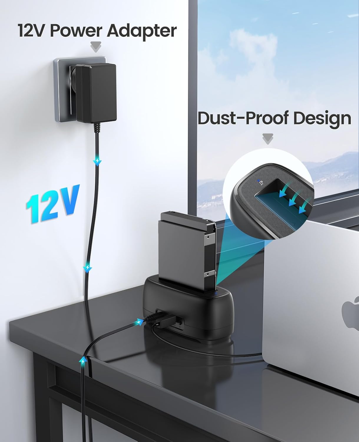 - 【Compatible 22TB Drives】: 3.5 Hard Drive Dock compatible with 2.5"/3.5" SATA I/II/III HDD and SSD, support a maximum of 22 TB serial ATA hard drives; Sata dock includes 3ft (1m) USB-A cables and power supply which can be used in most places and is small in size and easy to use