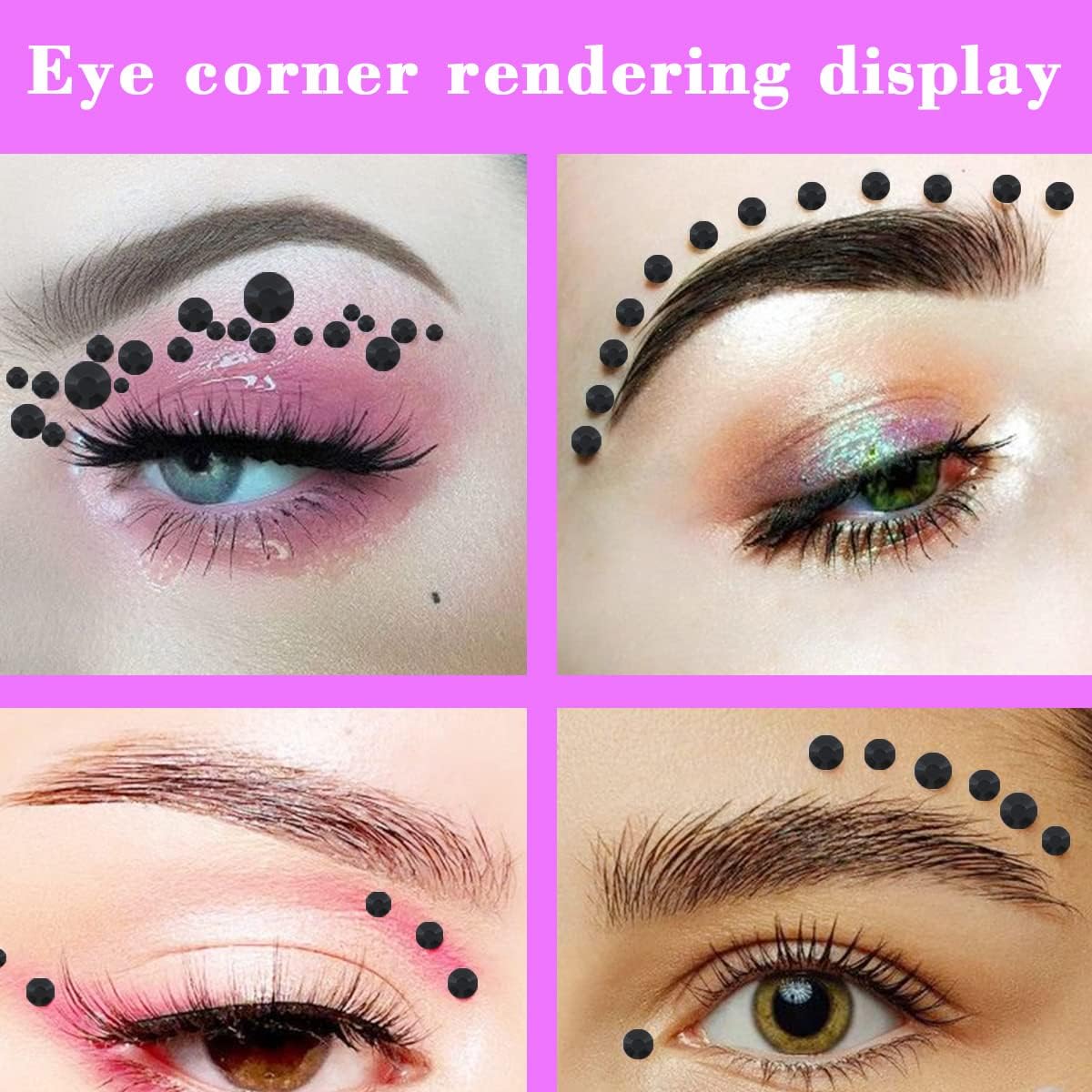 1799pcs Self Adhesive Face Gems Stickers, Hair Gems Rhinestones Stickers, Bling Jewels for Makeup, Crafts, Home Decor Scrapbooking Embellishments, 4 Sizes 3mm/4mm/5mm/6mm(Black Rhinestones)