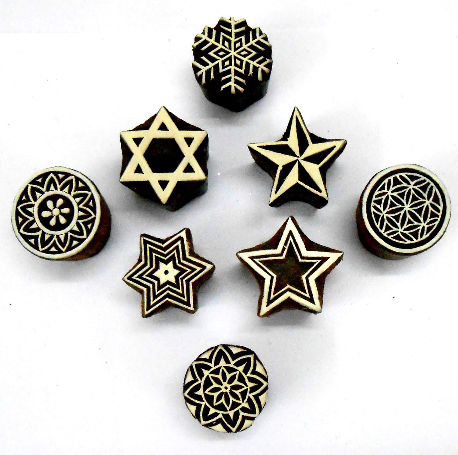 Pack of Elegant Design Wooden Blocks Stamps for Printing on Textiles, Pottery Crafts,Henna, Scrapbooking (Set of 8)