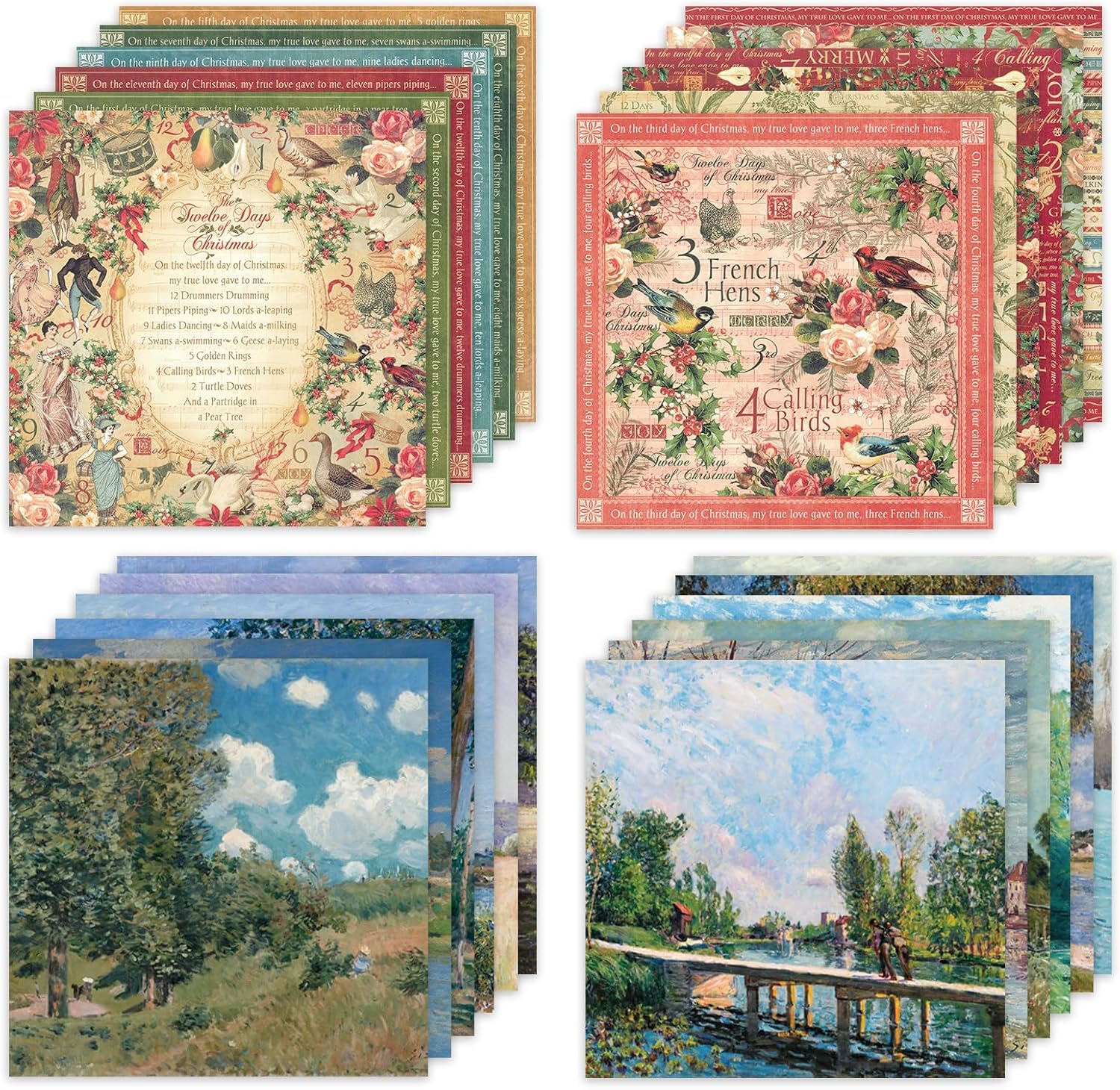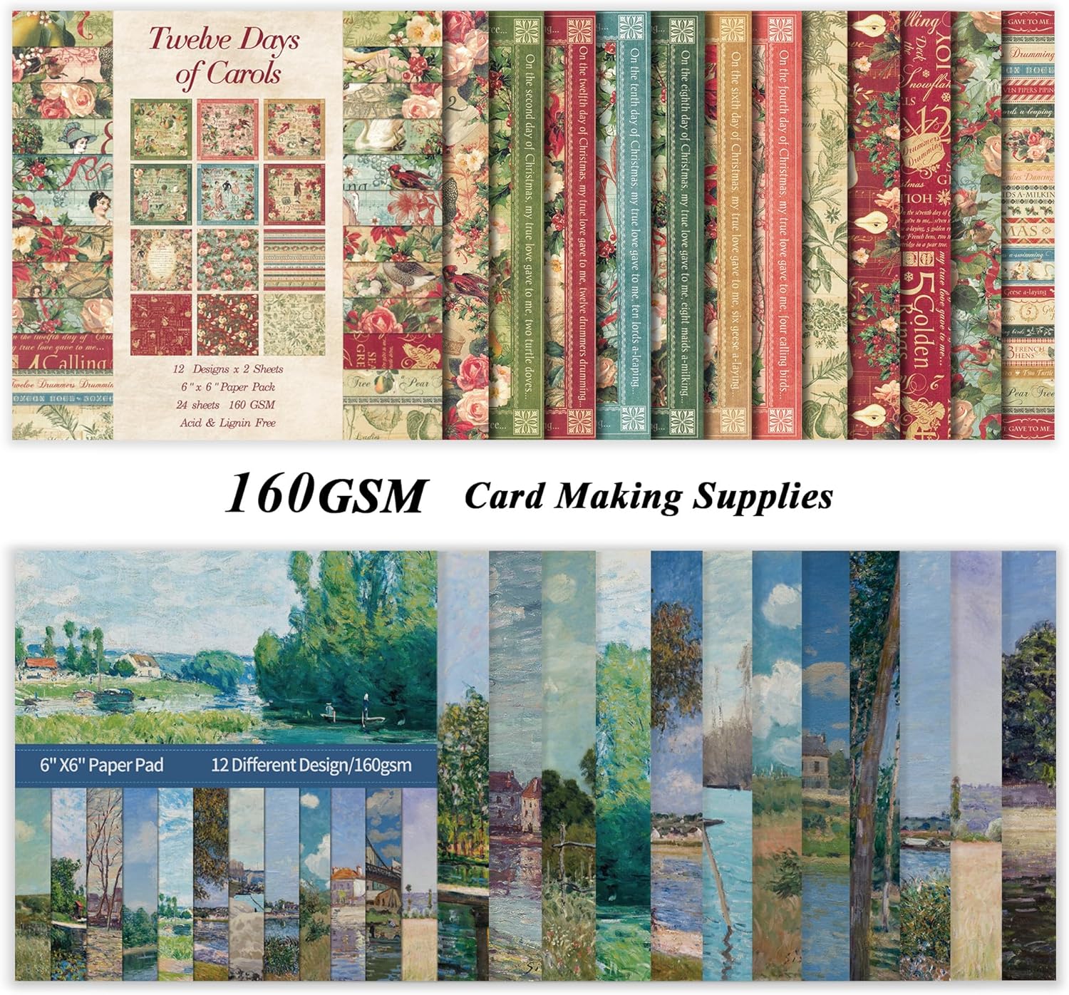48 Sheets 24 Designs Scrapbook Paper Pad, 6"×6" Single-Sided Decopodge Craft Cardstock Paper,Scrapbooking DIY Decorative Background Cardmaking Supplies.Carols&Paintings