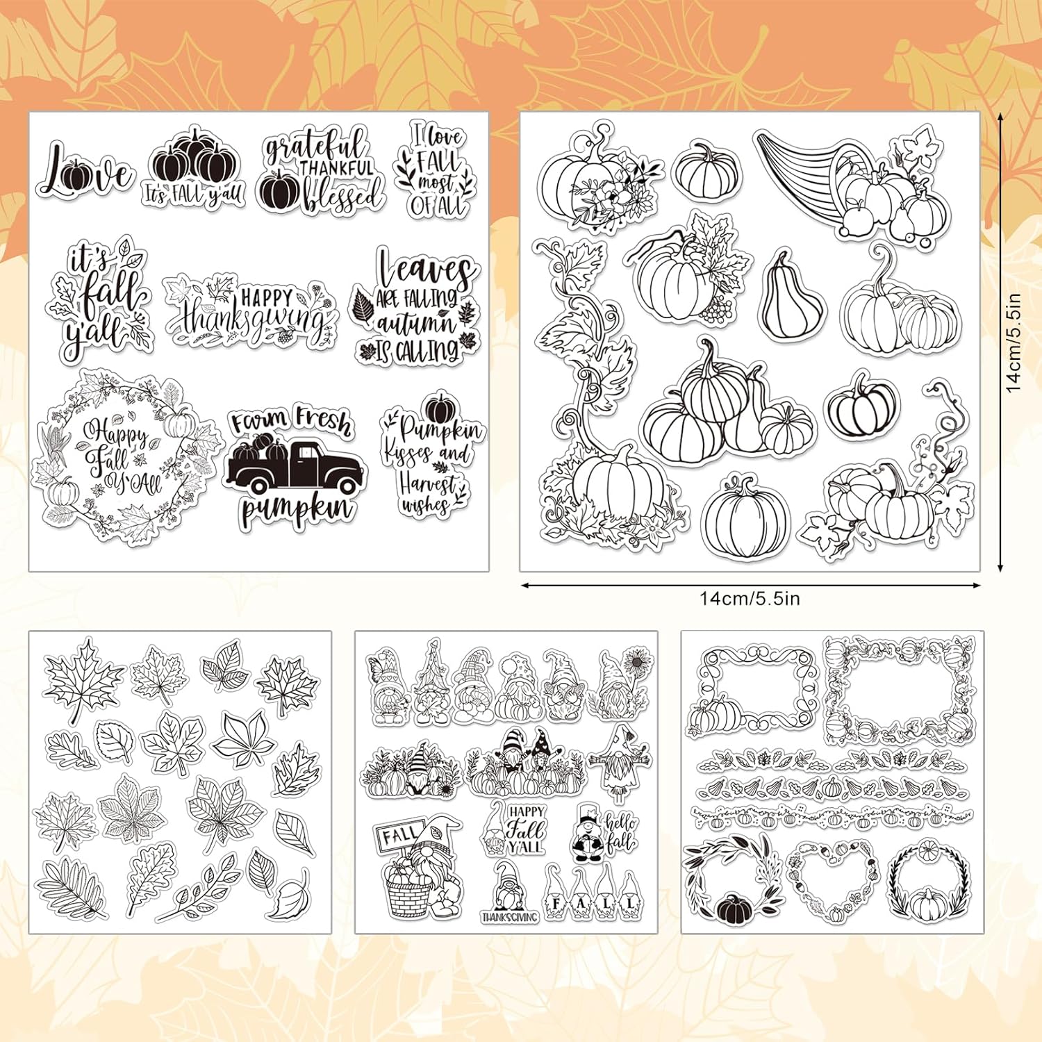 - Fall Thanksgiving Patterns - These clear stamps feature various fall Thanksgiving themed elements, such as pumpkin, autumn leaves, gnome, thanks words, etc, delicate and elegant, full of holiday feelings, will be great decoration to match with various cards.