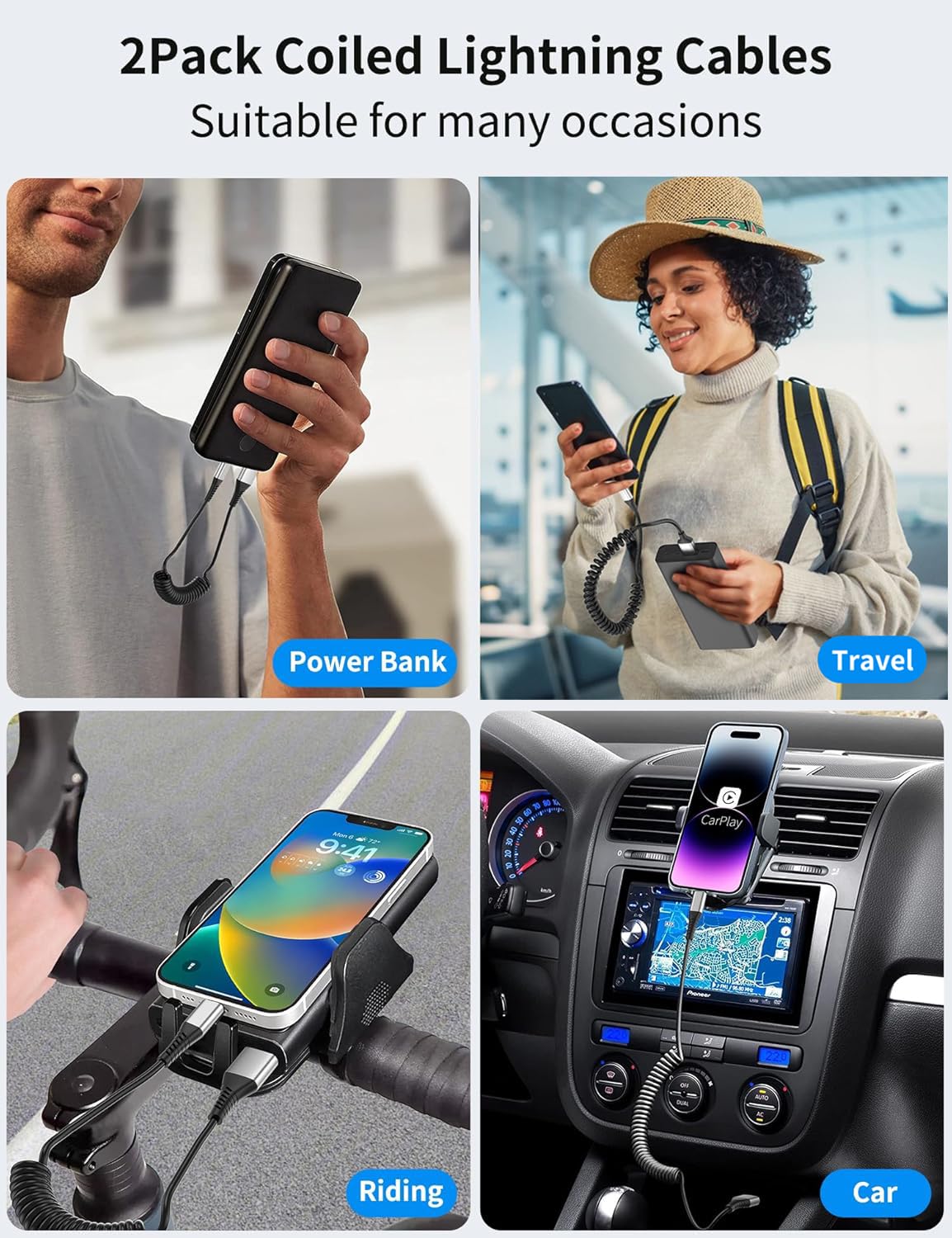 - 【Coiled Lightning Cable for Car】Retractable iPhone charger cable with spring-shaped design, anti-tangle and easy to carry. It can save space in the car and saying goodbye to the hassle of cable clutter and tangles.