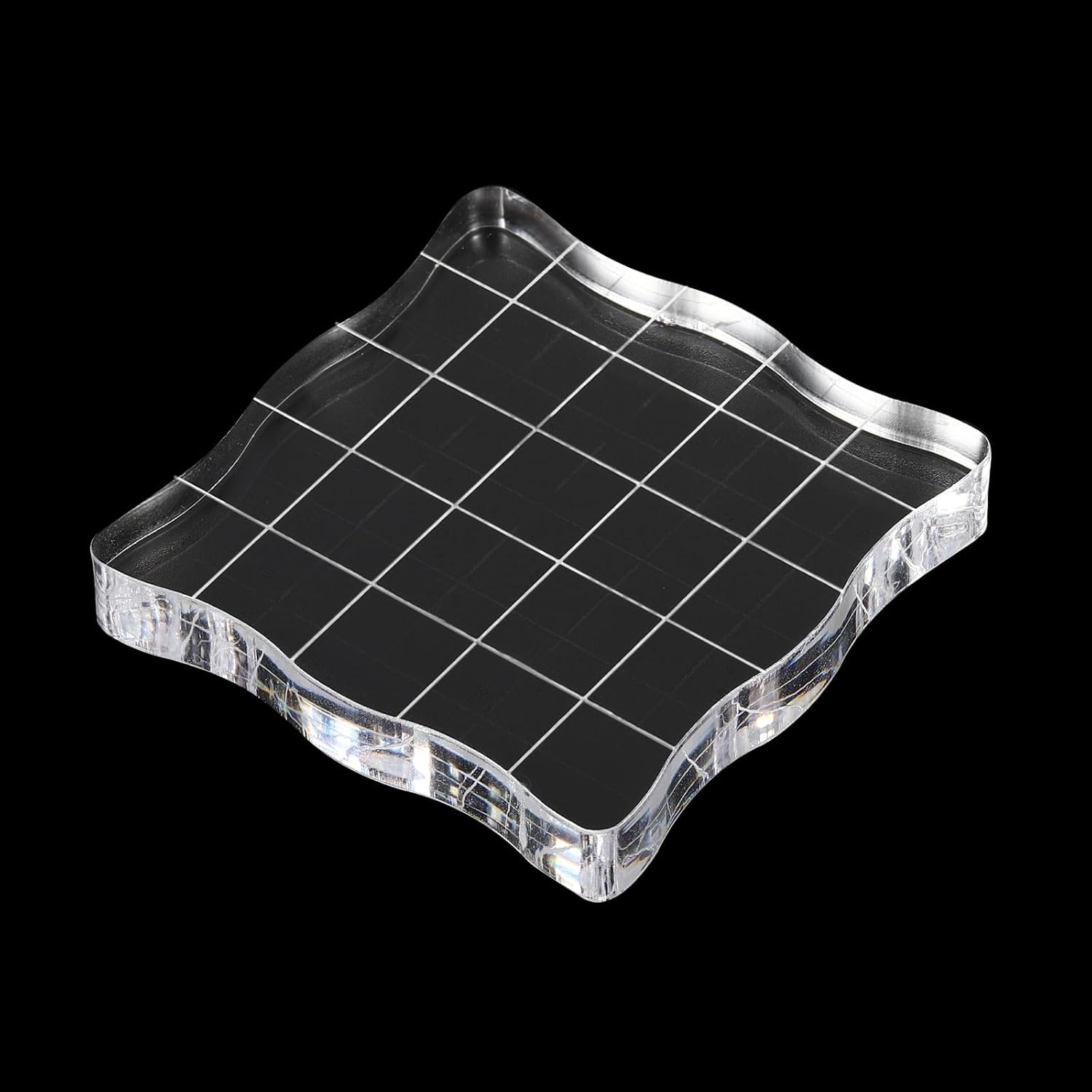 PATIKIL 2" x 2" Acrylic Stamp Block, 2 Pack Clear Stamping Block with Grid Lines Decorative Mounting Blocks Wave for Scrapbooking DIY Crafts Card Making