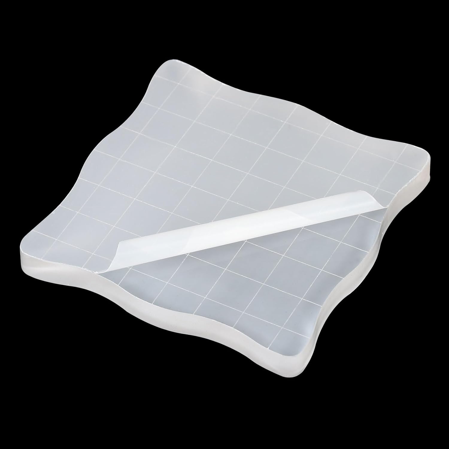 PATIKIL 3" x 3" Acrylic Stamp Block, Clear Stamping Block with Grid Lines Decorative Mounting Blocks Wave for Scrapbooking DIY Crafts Card Making