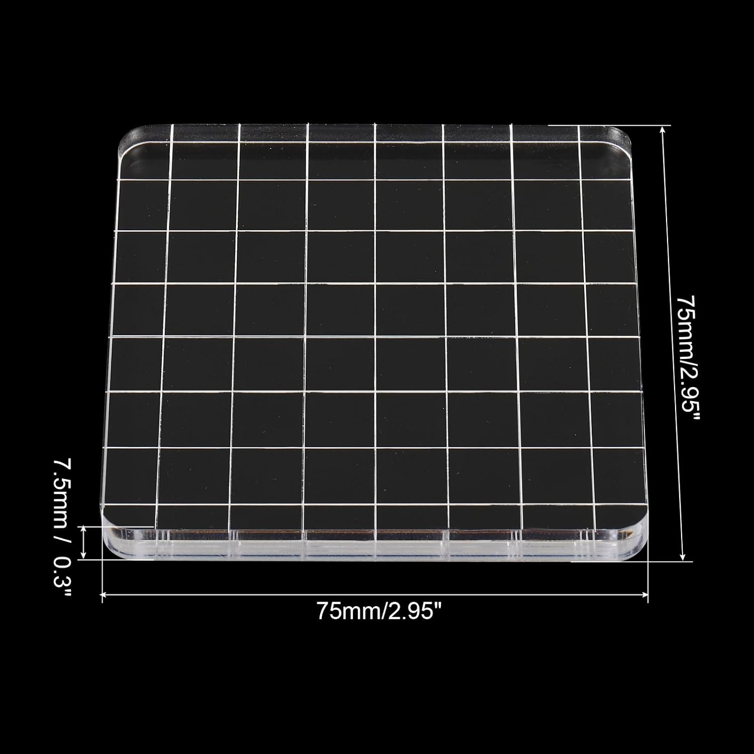 - Color: Transparent; Material: Acrylic; Size: 75 x 75 x 7.5mm / 2.95 x 2.95 x 0.3 inch(L*W*H); Packing List: 2 x Acrylic Blocks for Stamps