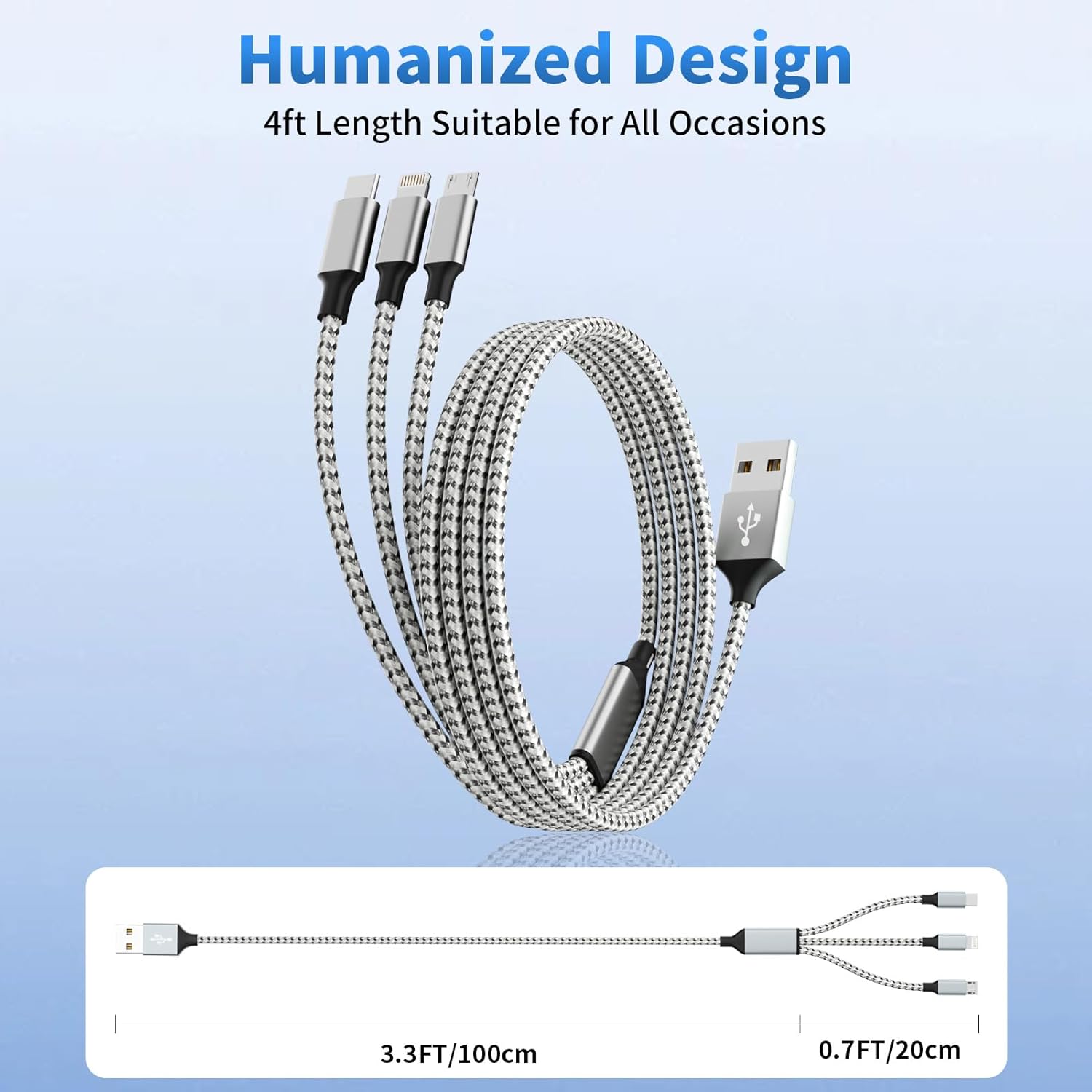 - 【HIGH QUALITY & DURABILITY】Multi phone charging cable designed and built with nylon braided materials, no tangle, which is made of high purity copper core and smart intelligent chip with overcharge protection, stable current protection. Each multiple charger cord cable has been tested with 20000+ times bend lifespan and strong bearing capacity. The high-quality aluminum housing makes the 3 in 1 usb cable more durable and resistant to heat and corrosion. Ensure a longer service life.
