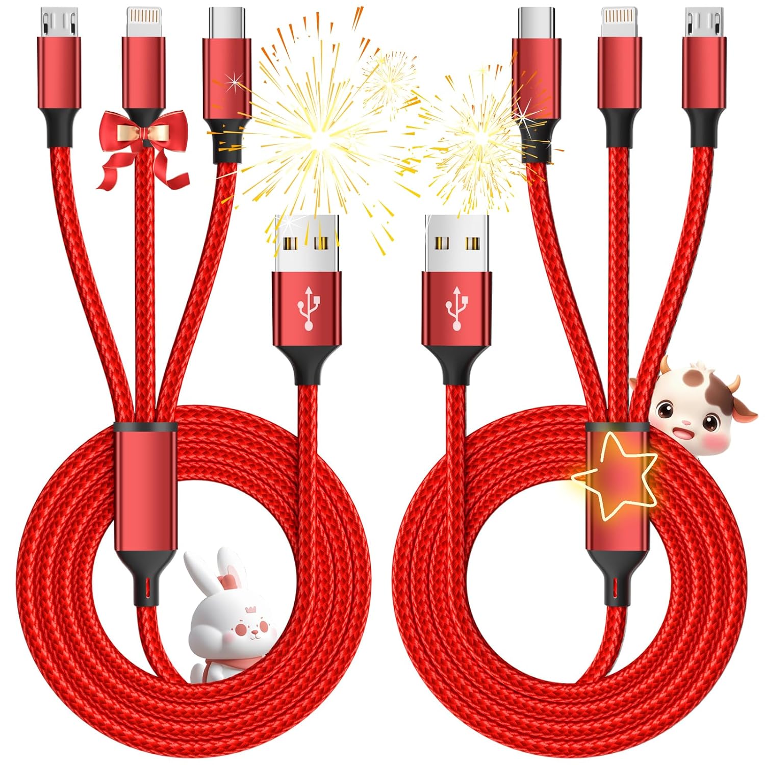 - 【PERFECT LENGTH】2Pack 4ft multiple phone charging cables enable you to charge your phone at ease, not restricted by the length of cable. And it's super handy to carry, one 3 IN 1 phone charger cords meets all your demand on families, travel or work, business trips and other occasions. The usb multi charging cord can also be used as a Christmas gift for your family and friends.