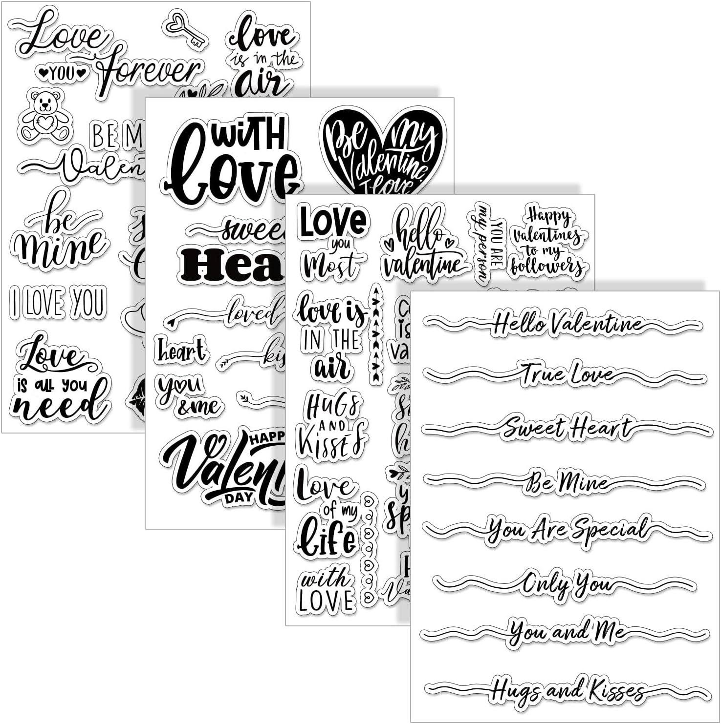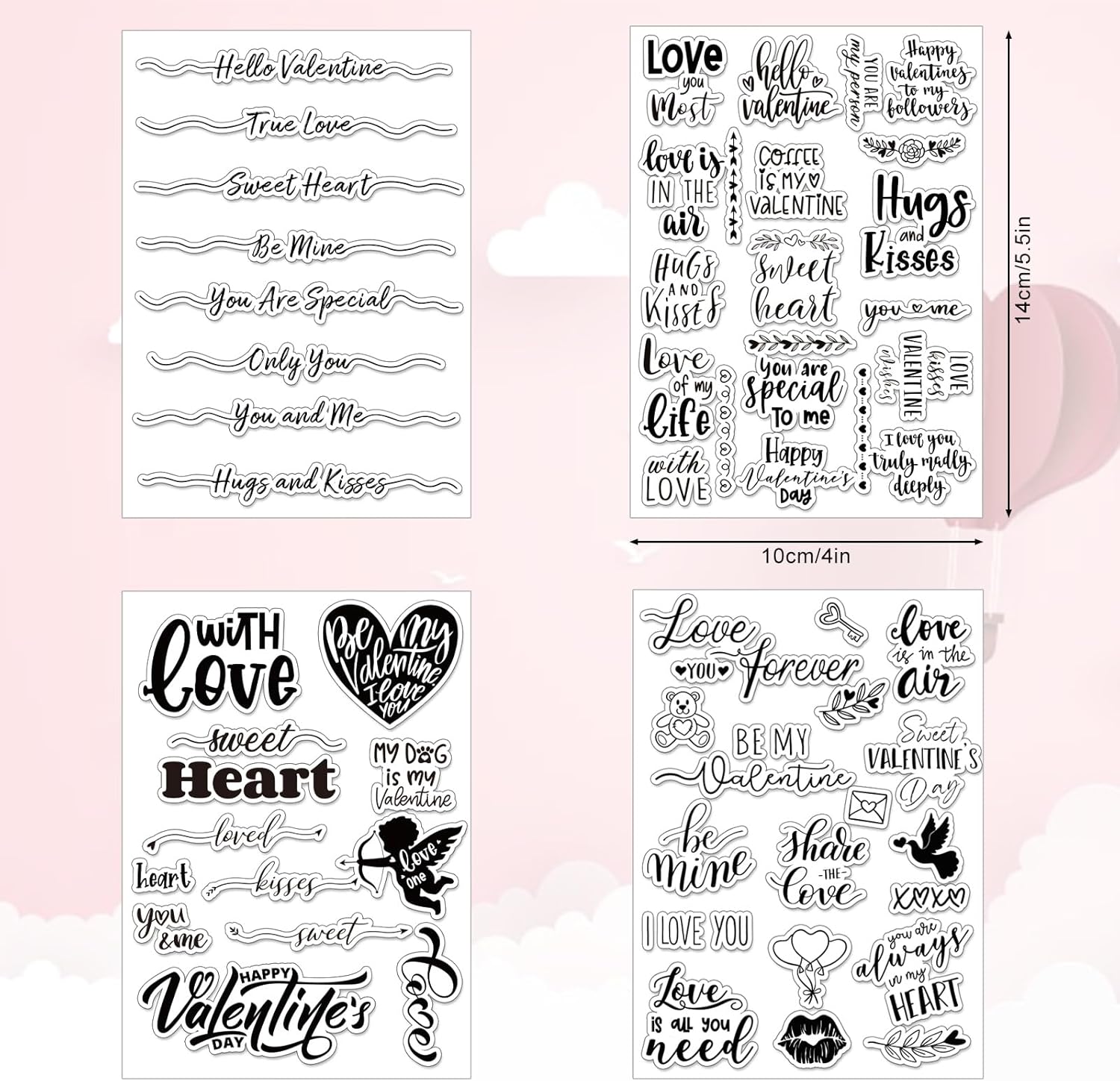 Whaline 4 Sheet Valentine's Day Words Clear Stamps Love Heart Silicone Transparent Stamps Border Stamp Cards for DIY Craft Card Making Scrapbooking Embossing Album Decor