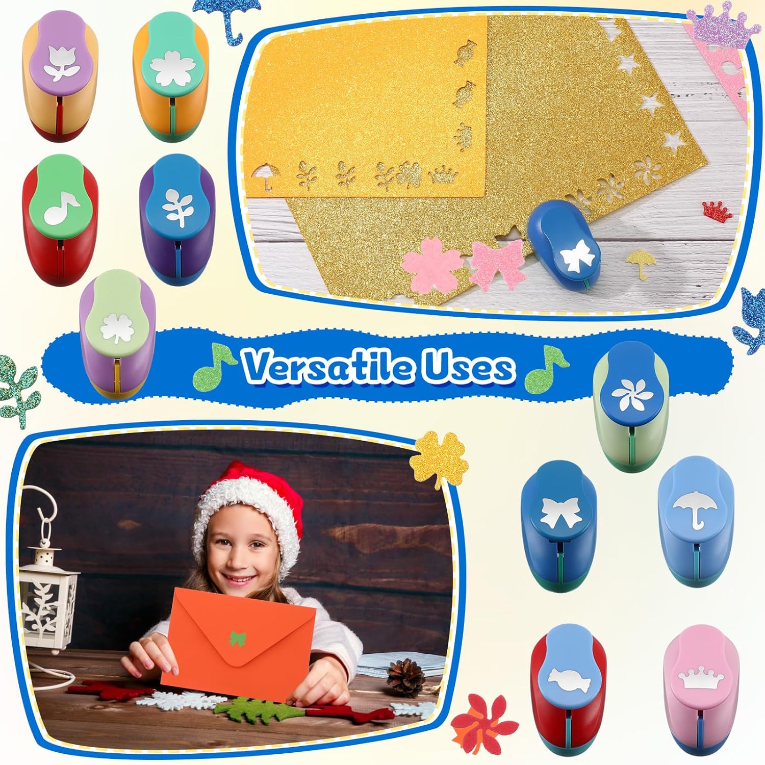- Creative Variety at Your Fingertips: explore your creativity with our hole punchers, ideal for all your craft projects; Coming in a pack of 10, each puncher showcases a different pattern: cherry blossom, crown, spray, bow, leaf, umbrella, tulip, music, candy, and others, providing endless possibilities for your imagination; The color of the product's shell is random