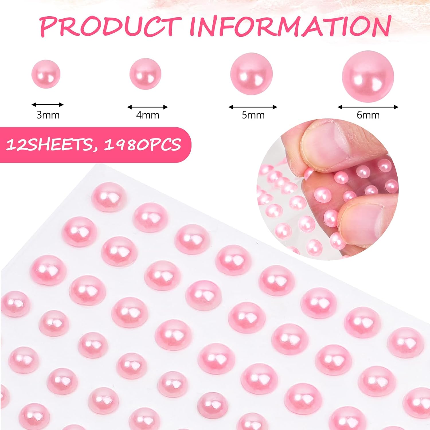 - Value Package: You will get 12 sheets pearl stickers, a total of 1980 pieces stick on pearls in 4 sizes - 3mm, 4mm, 5mm, 6mm.