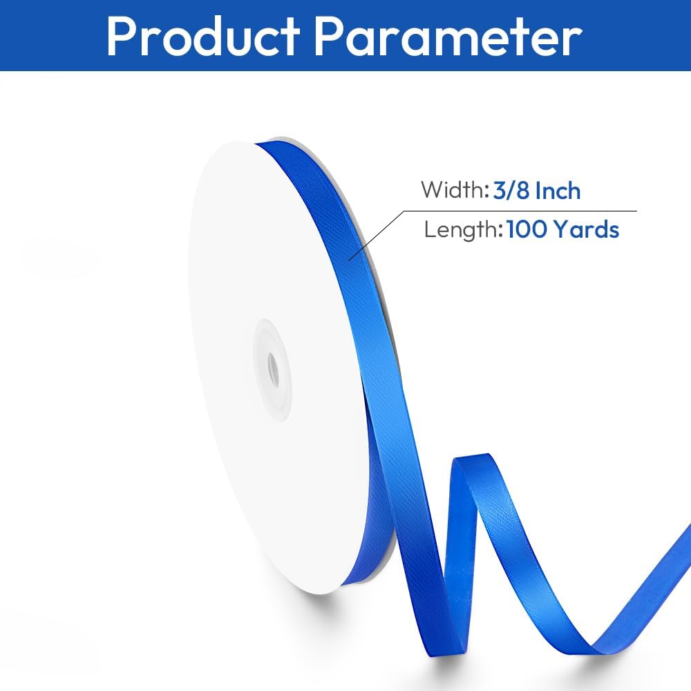 - 【Ample Length for Your Craft】3/8 inch royal blue satin ribbon is 100 Yds long, providing ample material for all your crafting needs such as wedding invitations, sewing, hair bows, flower bouquet supplies, lei making, homecoming mum accessories, and more.