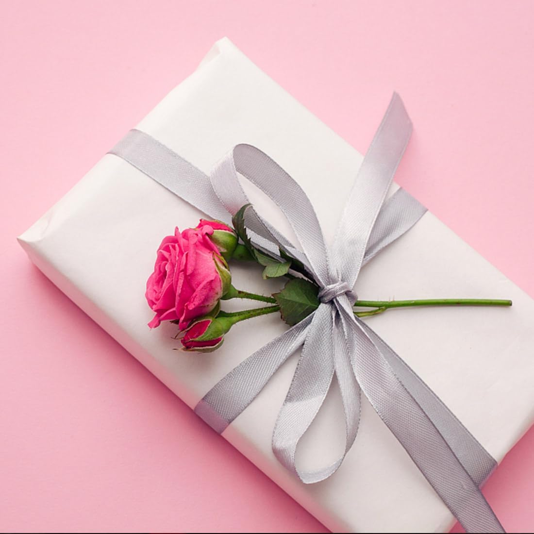 1" Width x 100 Yards Satin Ribbon, Silver Ribbon Perfect for DIY Craft, Bows, Gift Wrapping, Flower Bouquet, Valentine's Day, Christmas and Party Decoration