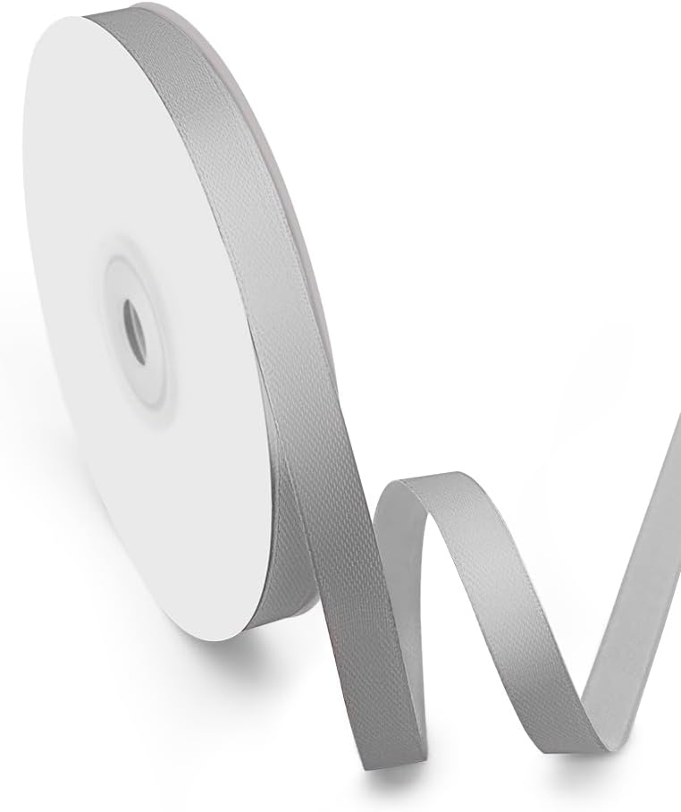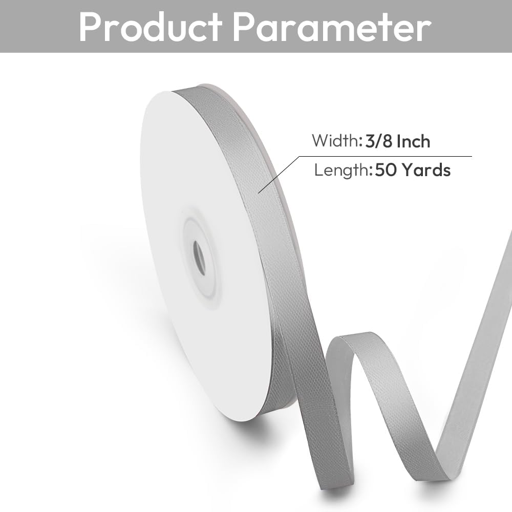 3/8" Width x 50 Yards Satin Fabric Ribbon, Silver Ribbon Perfect for DIY Bows, Swags, Gift Wrapping, Craft, Flower Bouquet,Christmas and Party Decoration