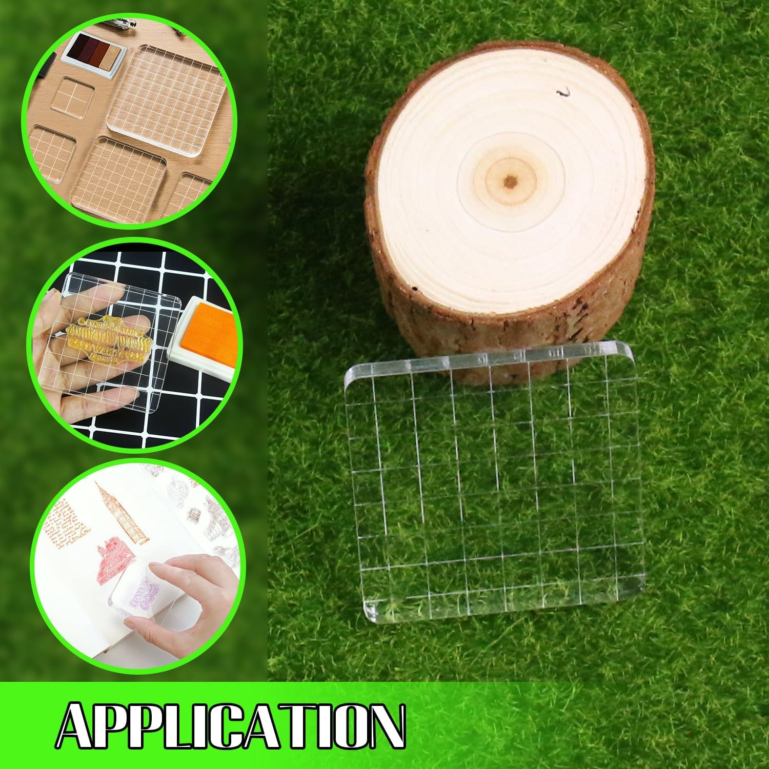 2Pcs Clear Stamp Blocks Set, 3 x 3 Inch Square Acrylic Blocks for Stamping With Grid Lines - Scrapbooking Crafts Tools