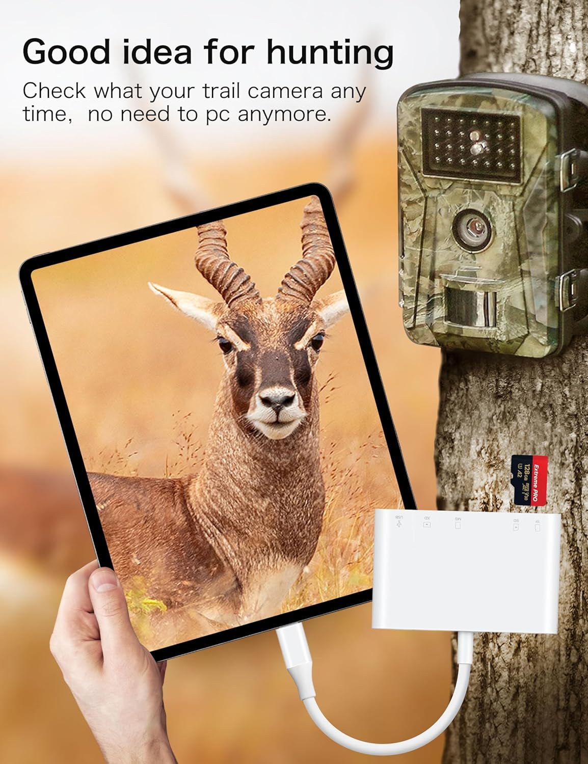 - 【 Read & Write one card and USB-A Port simultaneously】Simultaneously reading and writing on cards and USB port ,to save the constant plugging and pulling of plugs. The swap between cards and USB Port is handy and fast, you can back up your trail camera cards to USB Flash Drives. Note: Support to recognize one card and USB-A port simultaneously, do not support multiple cards synchronous reading.