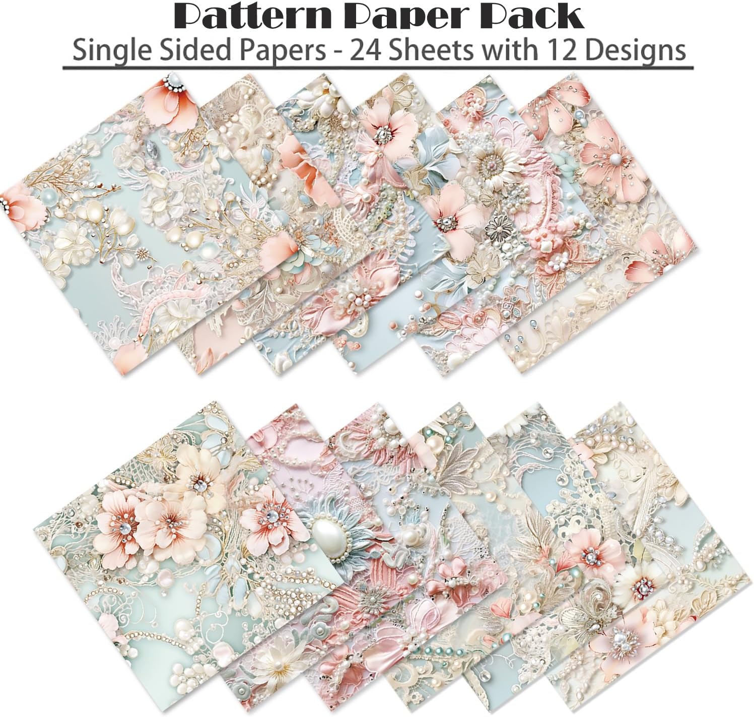Scrapbook Paper 6X6, Card Making Supplies, Single-Sided Cardstock Paper Pads, Decorative Craft Paper, Pearlescent Bloom Pattern Paper Pack, Decopodge Papers, Scrapbooking junk journal Supplies-24 PCS
