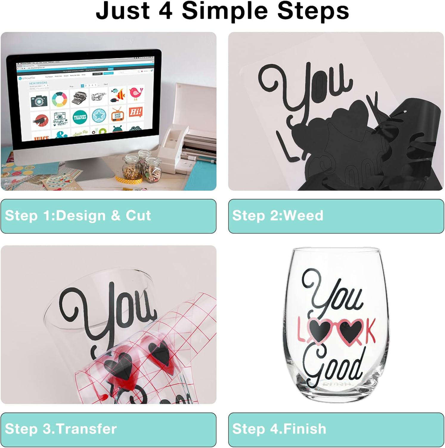 - CLEAR PET BACKING: Using our white and black permanent vinyl with PET backing, you will not need to clean your mat and worry about project damage. No more cheap paper backing ruining and separating from the vinyl for cricut in the cutting process. Notice: when you cut your project, please let the translucent PET backing face down the cutting mat