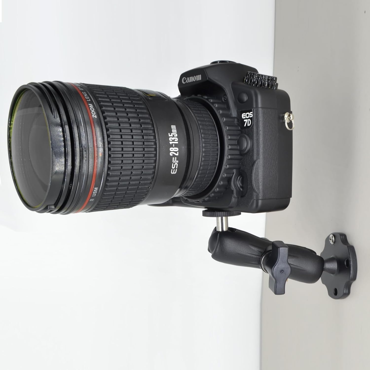 Heavy-Duty Camera Wall/Desktop Mount with 1/4"-20 Thread, Aluminum Alloy Arm, Dual Ball Heads, 1-Inch TPU Ball, Free Rotation,Compatible with DSLR, CCTV, RAM B System