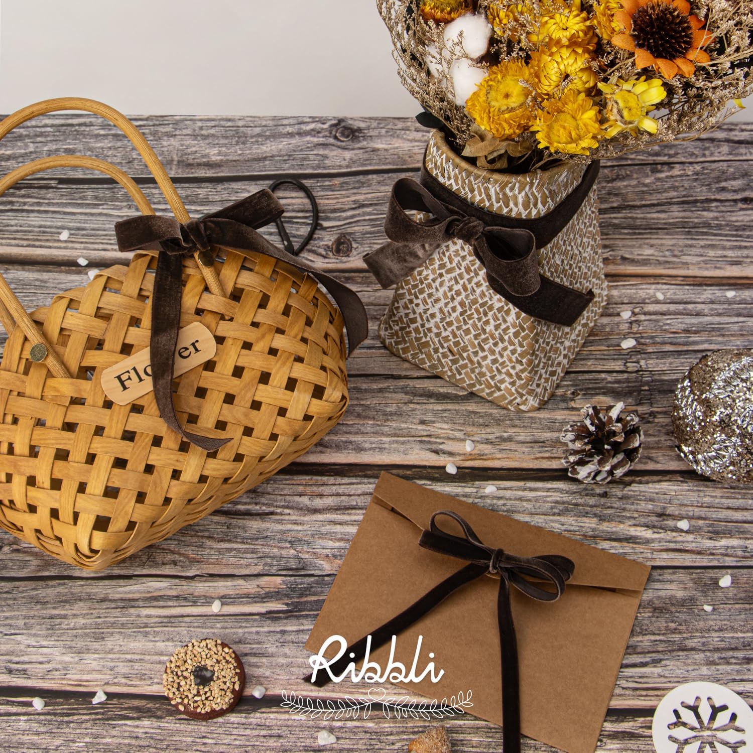 Ribbli Brown Velvet Ribbon 5/8 Inches Continuous10 Yard Spool Christmas Ribbon for Gift Wrapping Crafts Home Decor