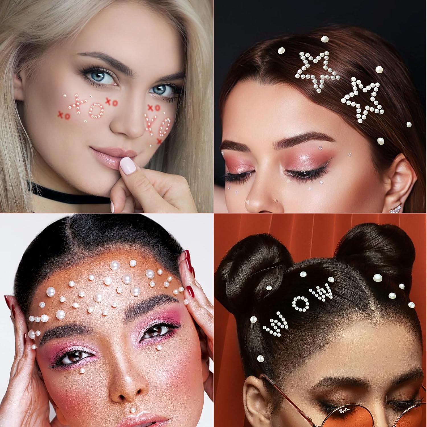 - Multifunctional Stick on Pearls: Ready-made alphabet, star, heart and chain shapes with single pearls, used not only for crafts, scrapbooks decoration, cards making but also for hair pearls and face pearls for concerts, parties, festivals, etc.