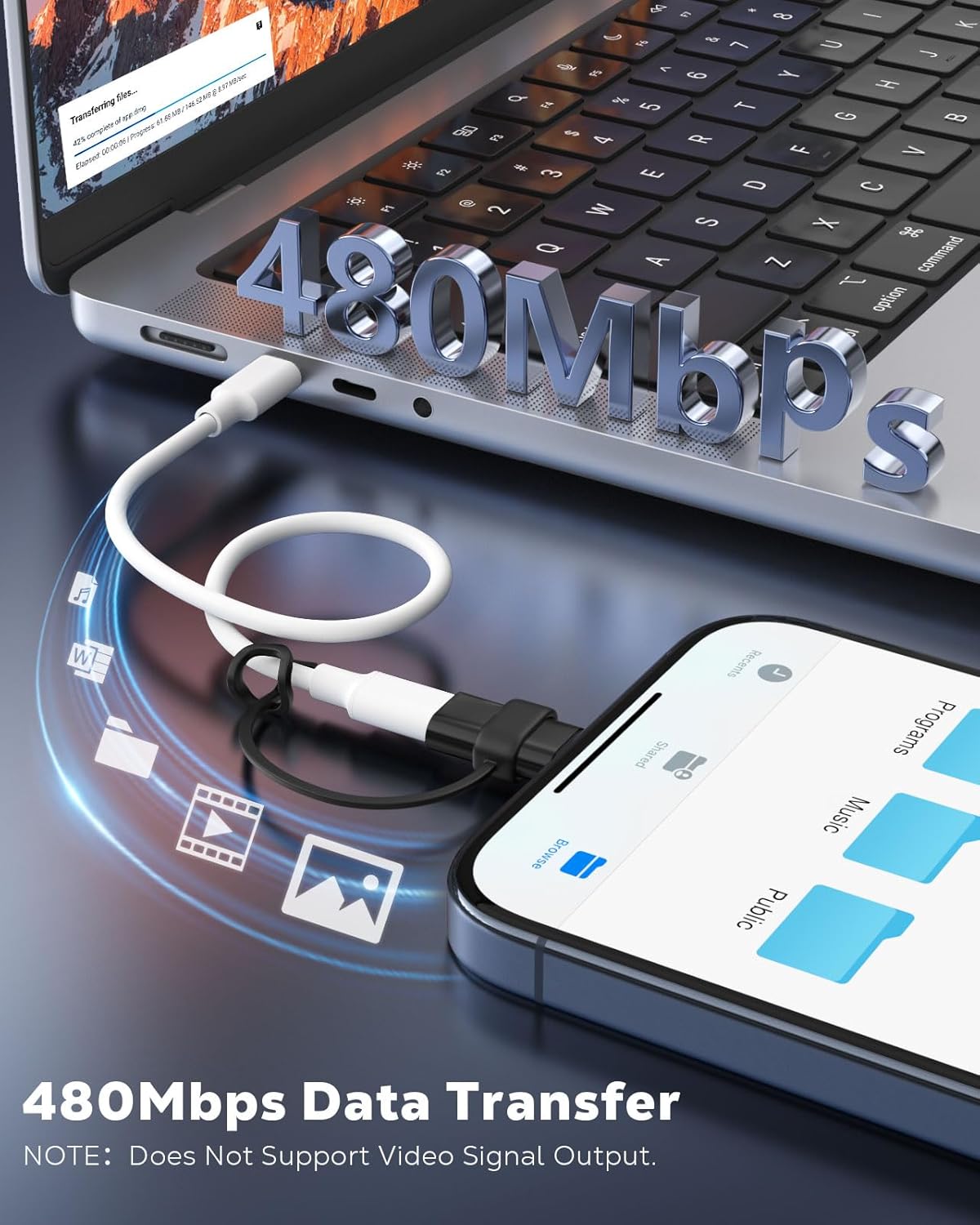 - Support Charging and Data Transfer: This iPhone to USB C adapter enables charging and data transfer speeds of up to 480 Mbps, making your iPhone or iPad directly compatible with Lightning to USB-A cables and Lightning to USB-C cables. It eliminates the need to carry around extra cables. Perfect for traveling, home and office use.