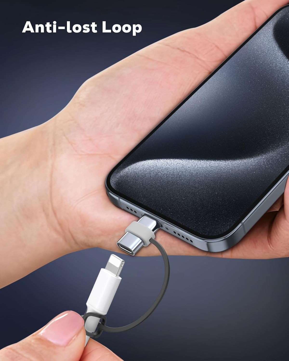 - Lose-proof and Long-lasting: This iPhone 15 adapter comes with anti-lost silicone loops, it can be easily held and attached to your most used cables, which can prevent loss and facilitate storage and carrying. With strict quality testing standards, this Lightning to USB C adapter has passed over 20,000 push and pull tests. Ideal for travel, home and office use.