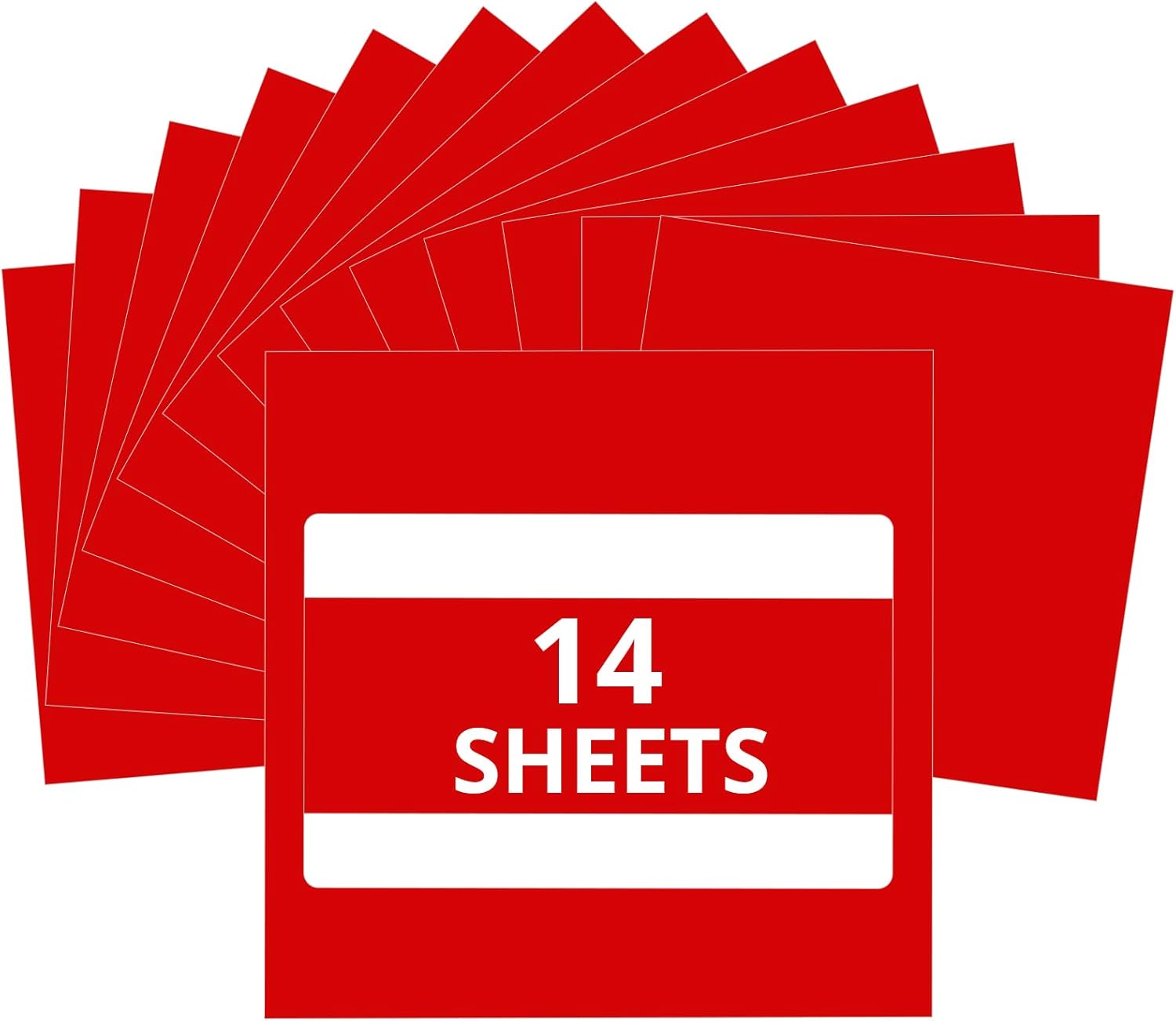HTVRONT Red Permanent Vinyl - 14 Pack Glossy 12 ” x 12 ” Adhesive Sheets for Craft Projects, Party Decoration, Red Permanent Adhesive Vinyl for All Cutting Machine