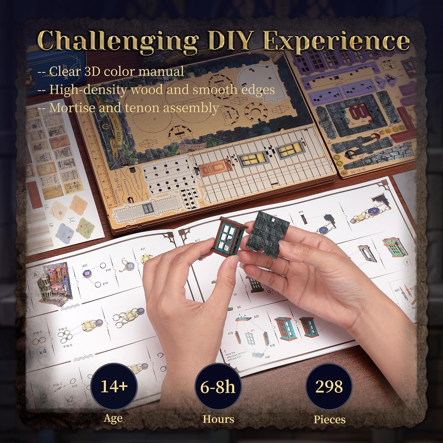 - 【Exquisite Details and Miniature Adventure】Delicate details bring the magic alley to life. Unleash your creativity with this miniature house kit. Dive into the enchanting world of the magic alley, uncover hidden treasures, and explore secrets waiting to be discovered.