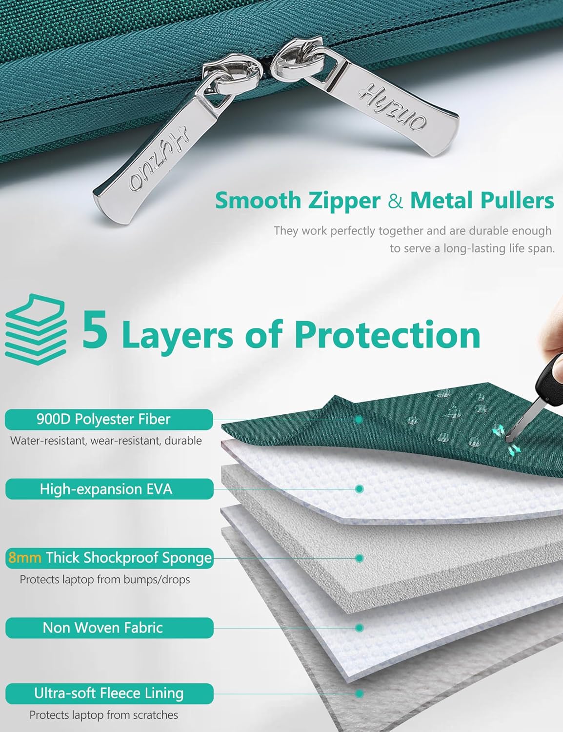 - 360° Multi-layer Superior Protection: The outer fabric is water-resistant and scratch-resistant, the middle layer is padded with 8 mm thickness to absorb bumps and shocks, and the soft velvet lining protects your laptop from scratches. There is also a 2cm wide protective ridge all around. As a result, your laptop is always tightly wrapped and protected with 360° multiple protection