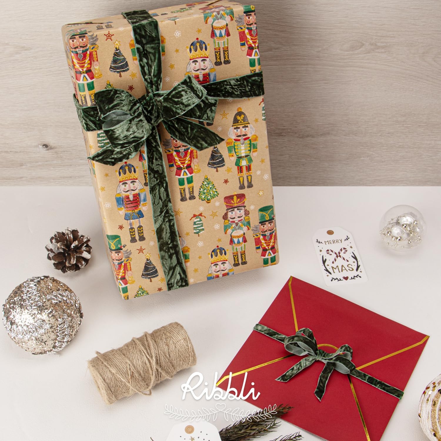 Ribbli Forest Green Velvet Ribbon 1 Inches Luxury Crinkled Green Christmas Ribbon for Gift Wrapping Crafts Home Decor-Continuous 10 Yard
