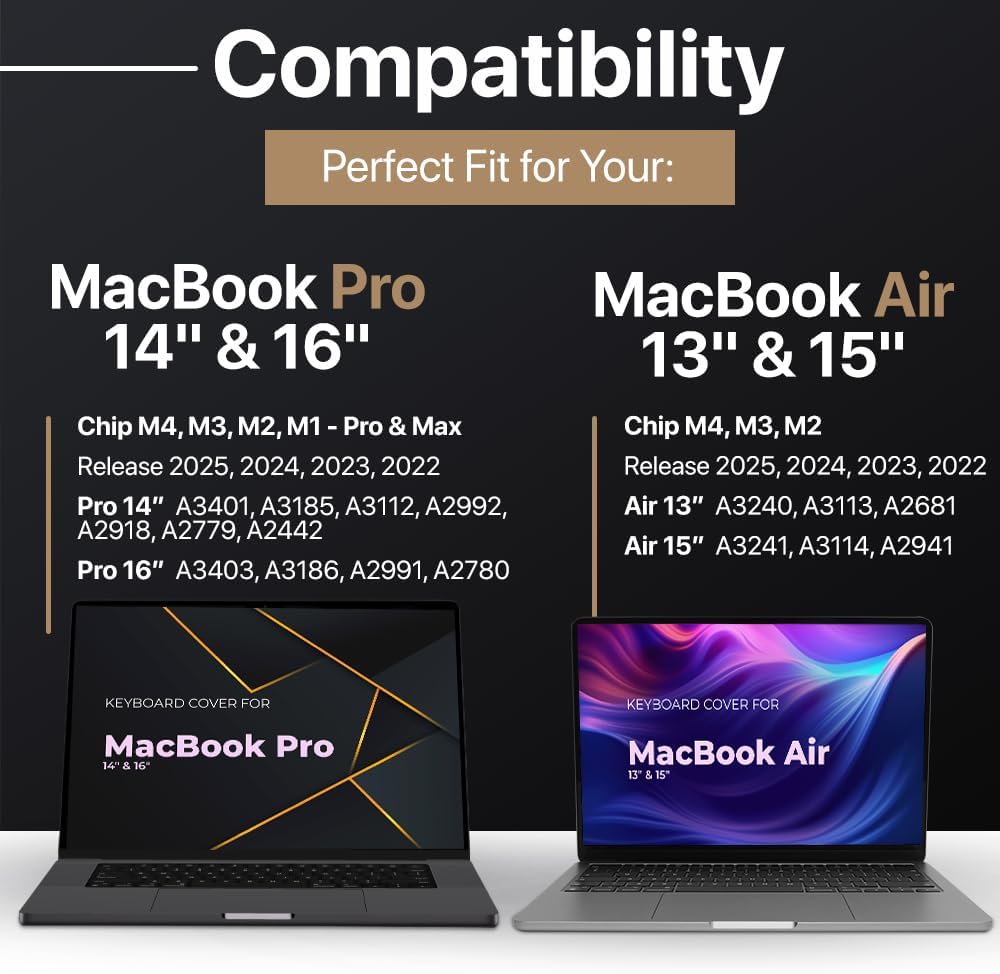- MacOS Shortcut Skin Perfect Fit for Latest MacBook Models: MacBook Pro 14 inch keyboard cover M4 and MacBook Pro 16 inch keyboard cover M4 Pro Max. Perfectly works as MacBook Air 13 inch keyboard cover M4 and MacBook Air 15 inch keyboard cover as well.