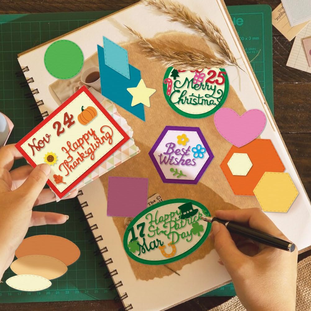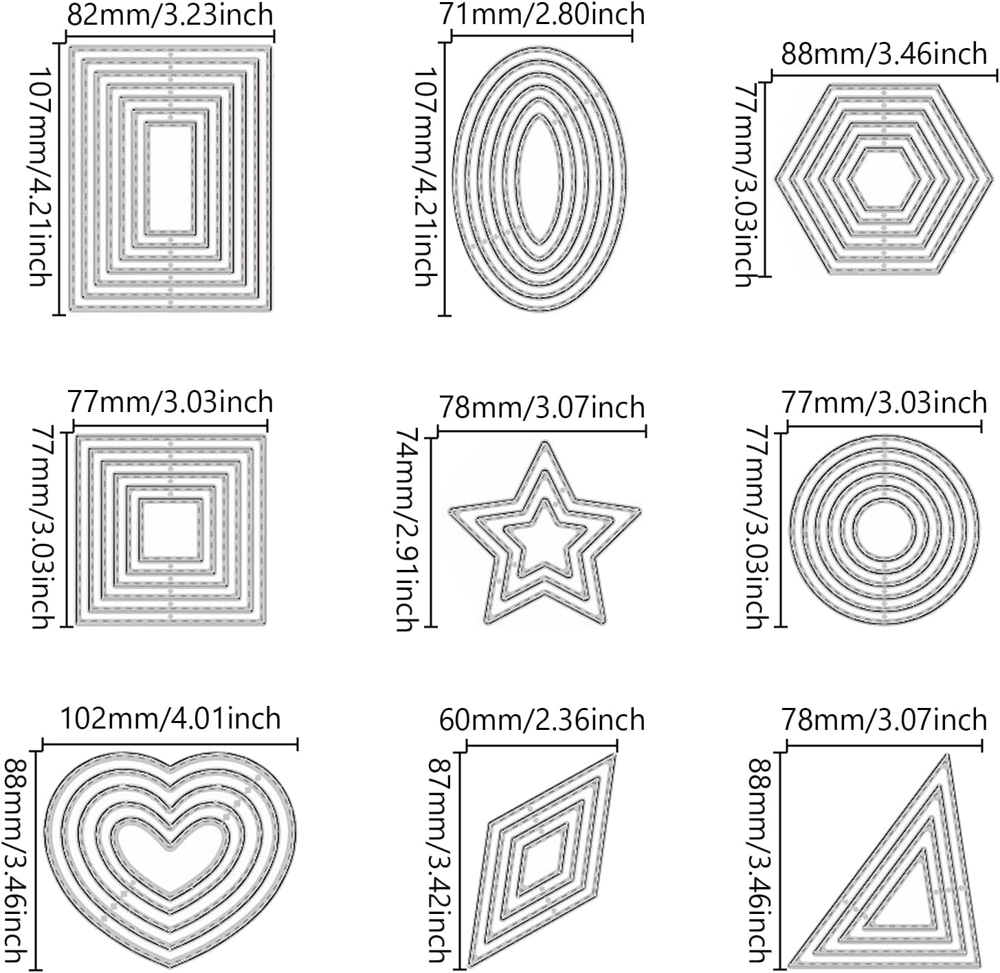 - 【Multiple Combinations】Our package contains 9 patterns die cuts: Circle, Ellipse, Square, Rectangle, Triangle, Rhombus, Star, Heart, Hexagon. Metal cutting dies are available for all your DIY greeting card making needs and are perfect for adding some prettiness to your paper crafts. Get creative with your crafts
