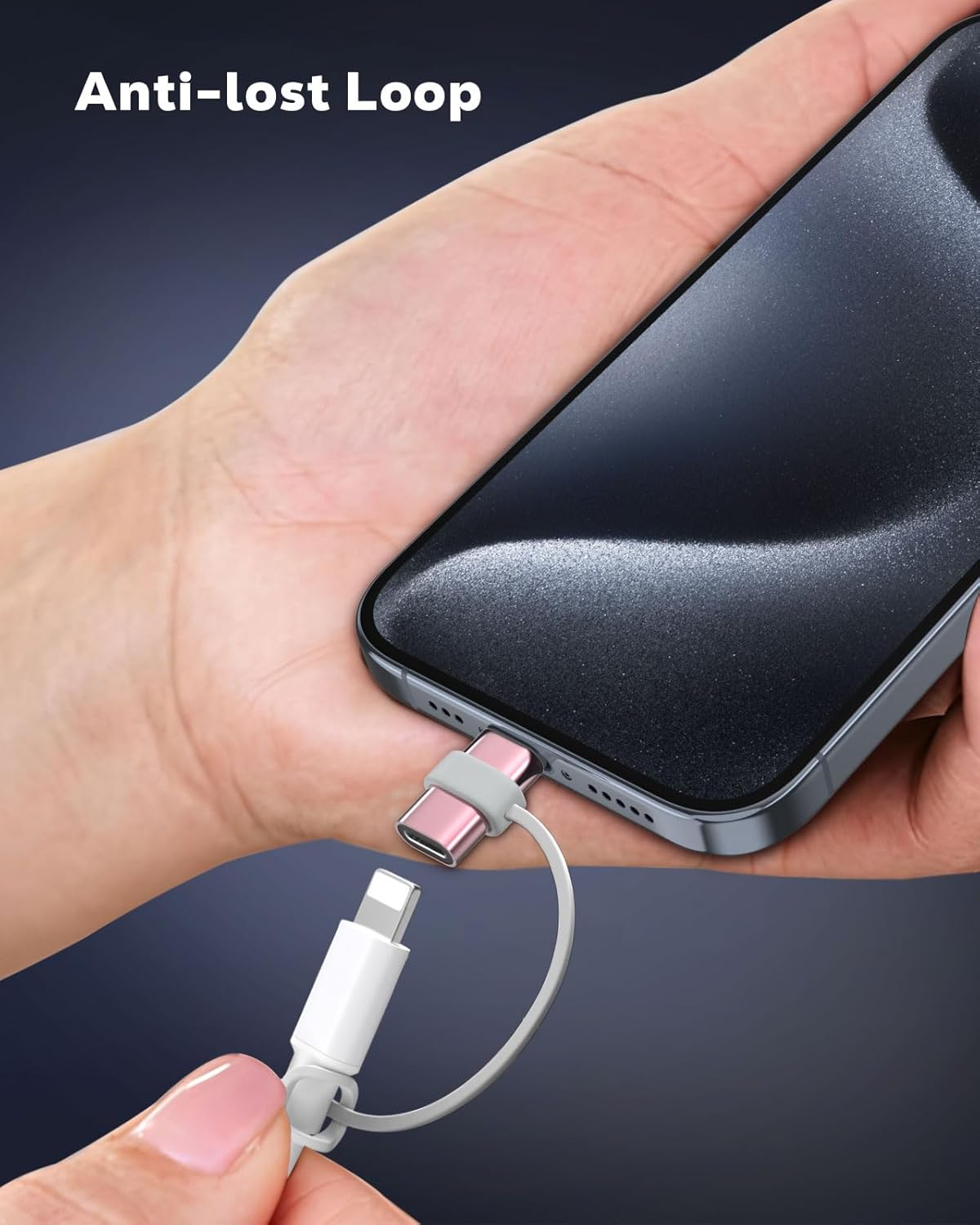 - Lose-proof and Long-lasting: This iPhone 15 adapter comes with anti-lost silicone loops, it can be easily held and attached to your most used cables, which can prevent loss and facilitate storage and carrying. With strict quality testing standards, this Lightning to USB C adapter has passed over 20,000 push and pull tests. Ideal for travel, home and office use.