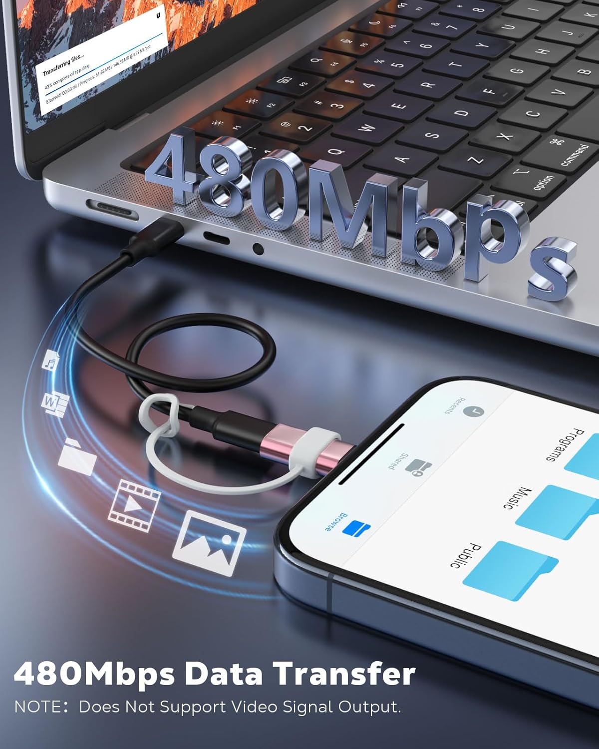 - Support Charging and Data Transfer: This iPhone to USB C adapter enables charging and data transfer speeds of up to 480 Mbps, making your iPhone or iPad directly compatible with Lightning to USB-A cables and Lightning to USB-C cables. It eliminates the need to carry around extra cables. Perfect for traveling, home and office use.