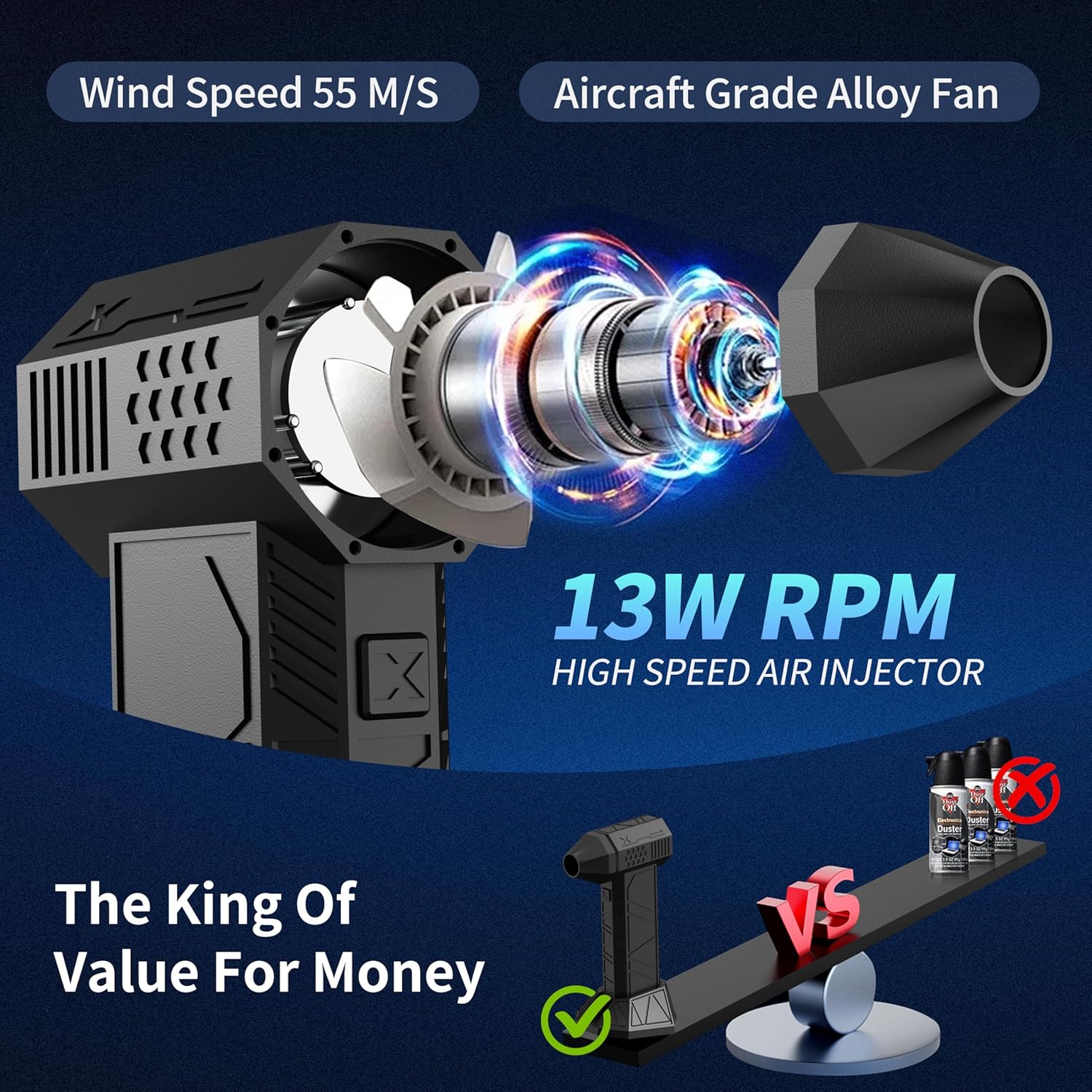 BlueBark Compressed Air Duster, 13,000 Rpm Air Duster, Replacement Of Compressed Can, Four Wind Speeds & Aviation Grade Alloy Fan Blade, Gifts For Men, For Car Accessories, Keyboard Cleaning