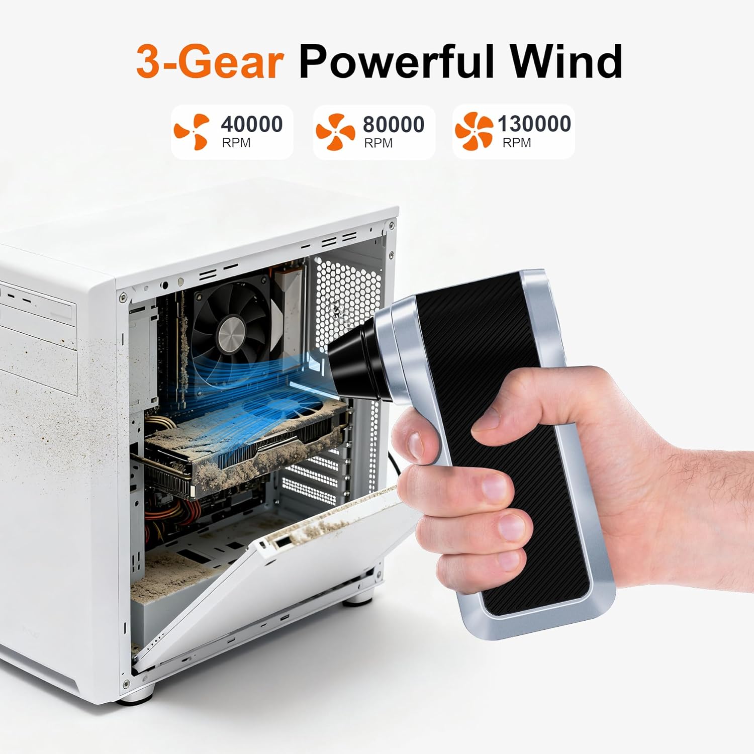 Electric Air Duster - 130000RPM Compressed Air Duster with Brushless Motor,3-Gear Speeds - Air Duster, 4pcs Nozzles - Mini Blower for Keyboard,Car,PC,Home Cleaning